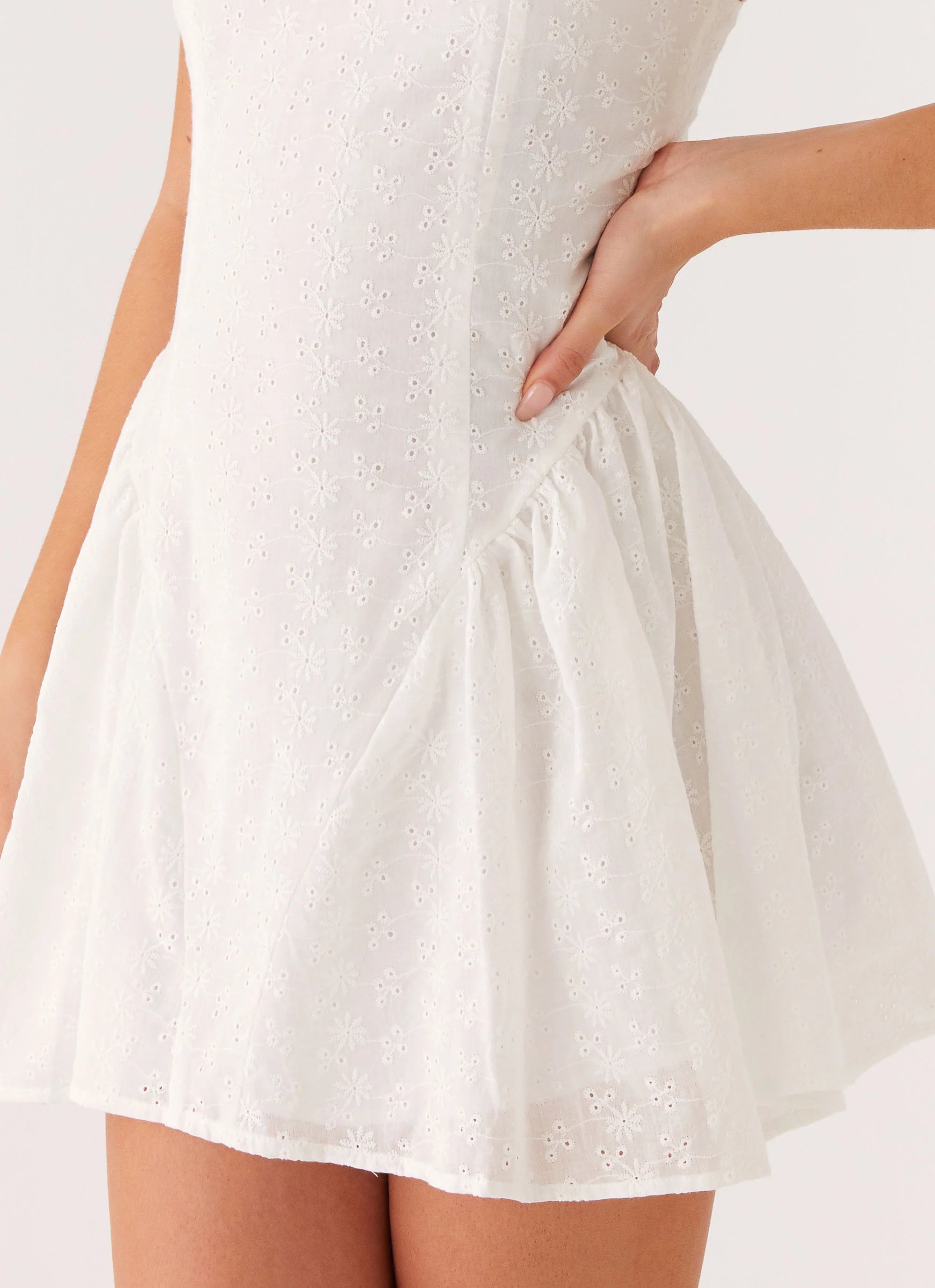The Alyssa Mini Dress is all about delicate allure. Featuring a square neckline, thick straps, and intricate lace material, it’s designed to captivate under golden skies and turn heads through every unforgettable moment.