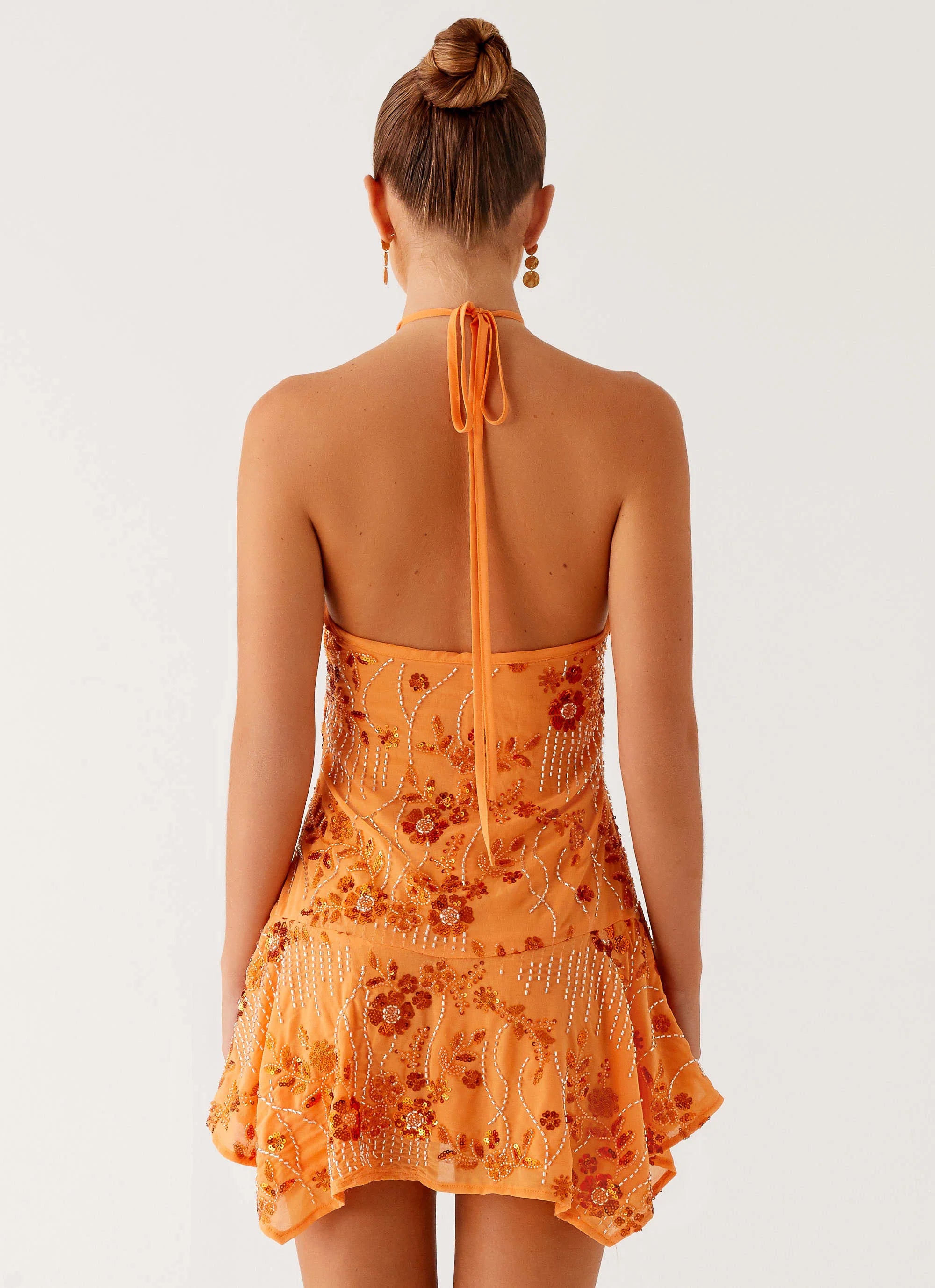 Turn up the glam in the Ampolia Halter Mini Dress, crafted from shimmering beaded fabric with a sleek halter neckline. Fully lined and perfectly fitted, it's your go-to piece for nights that call for sparkle.