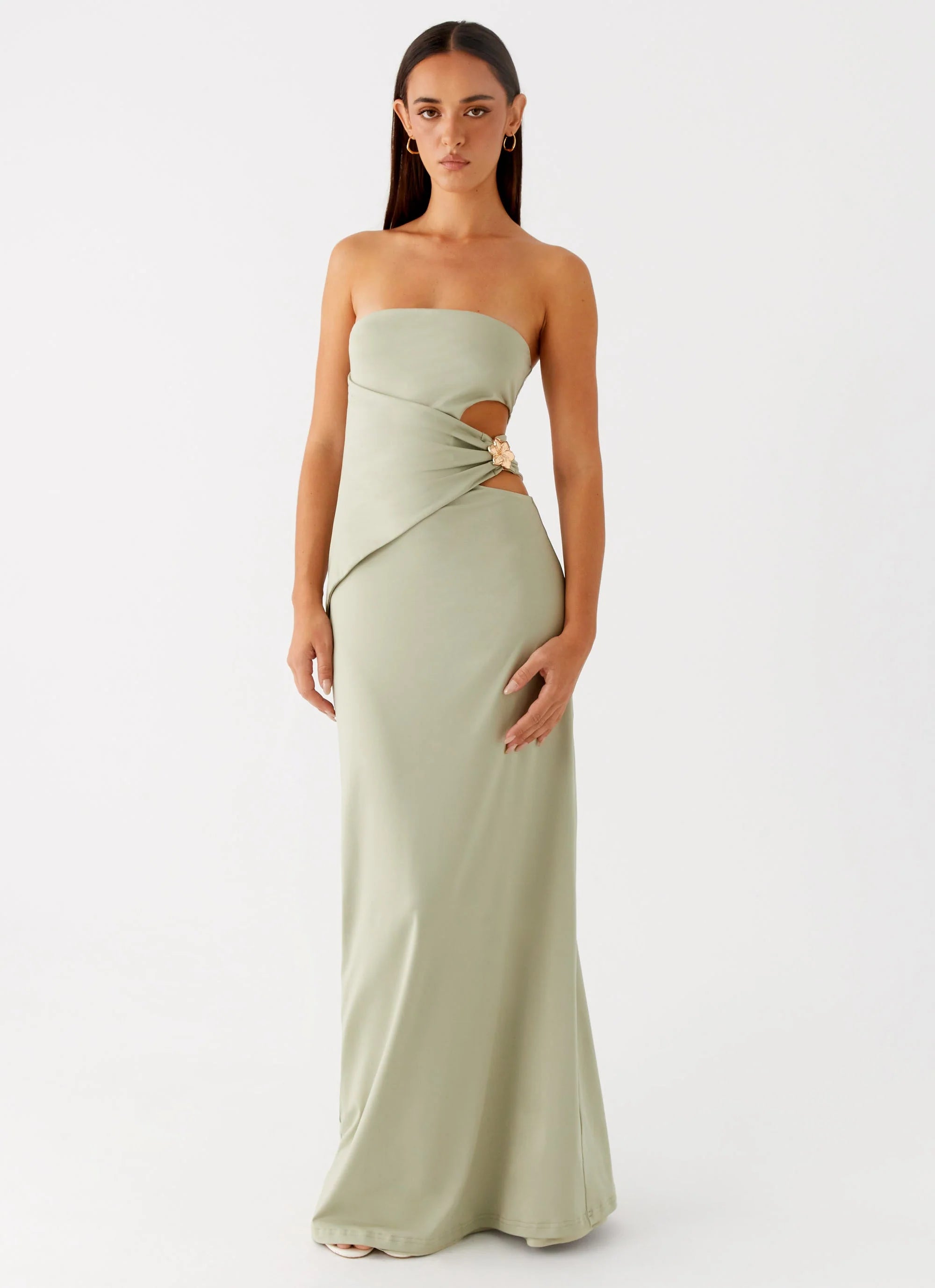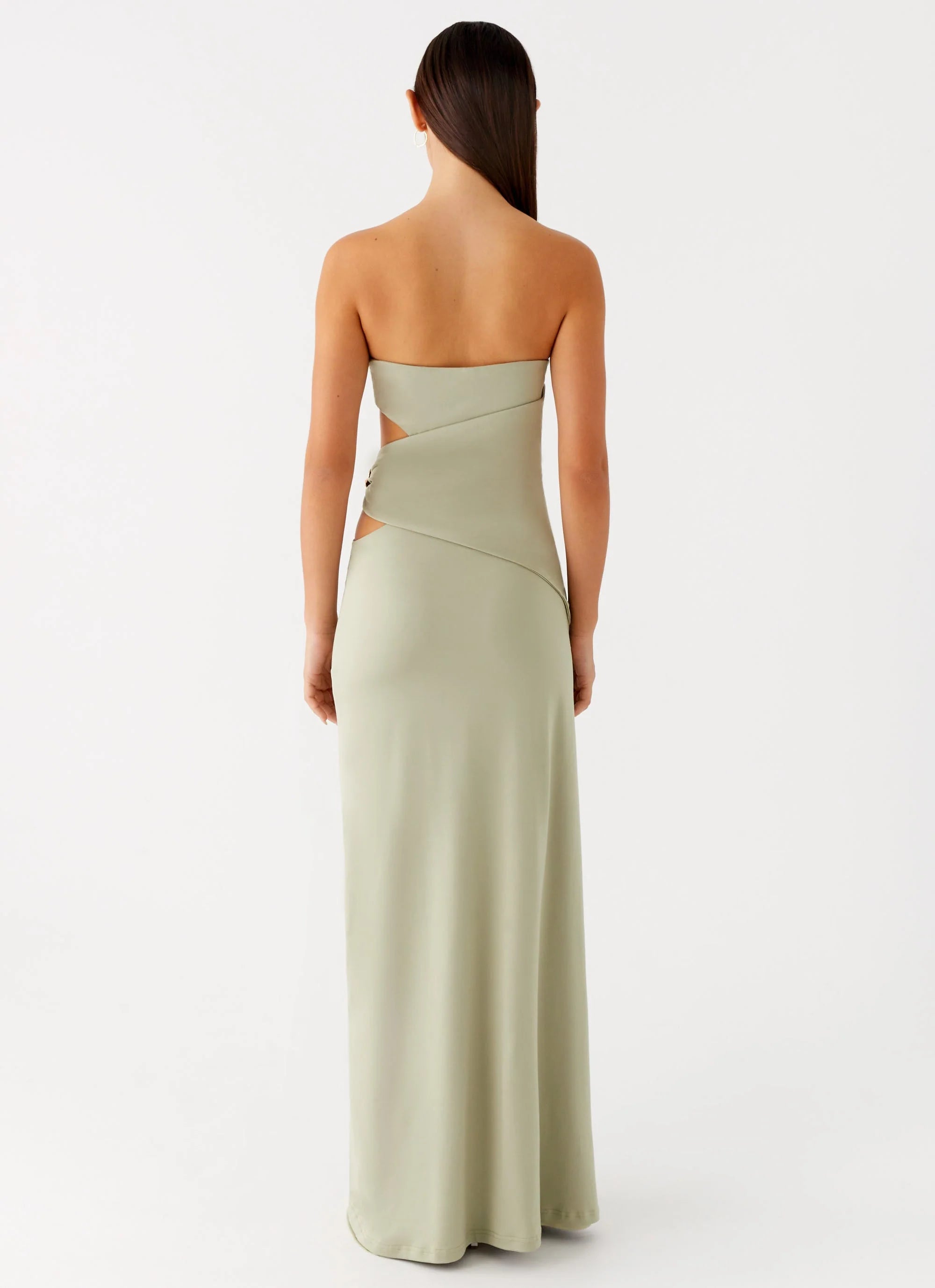 Bold and body-hugging, the Anetta Maxi Dress features side cut-outs, ruching at the waist, and a metallic front embellishment. Made from stretch jersey and fully self-lined, it delivers a striking silhouette with a comfortable fit.