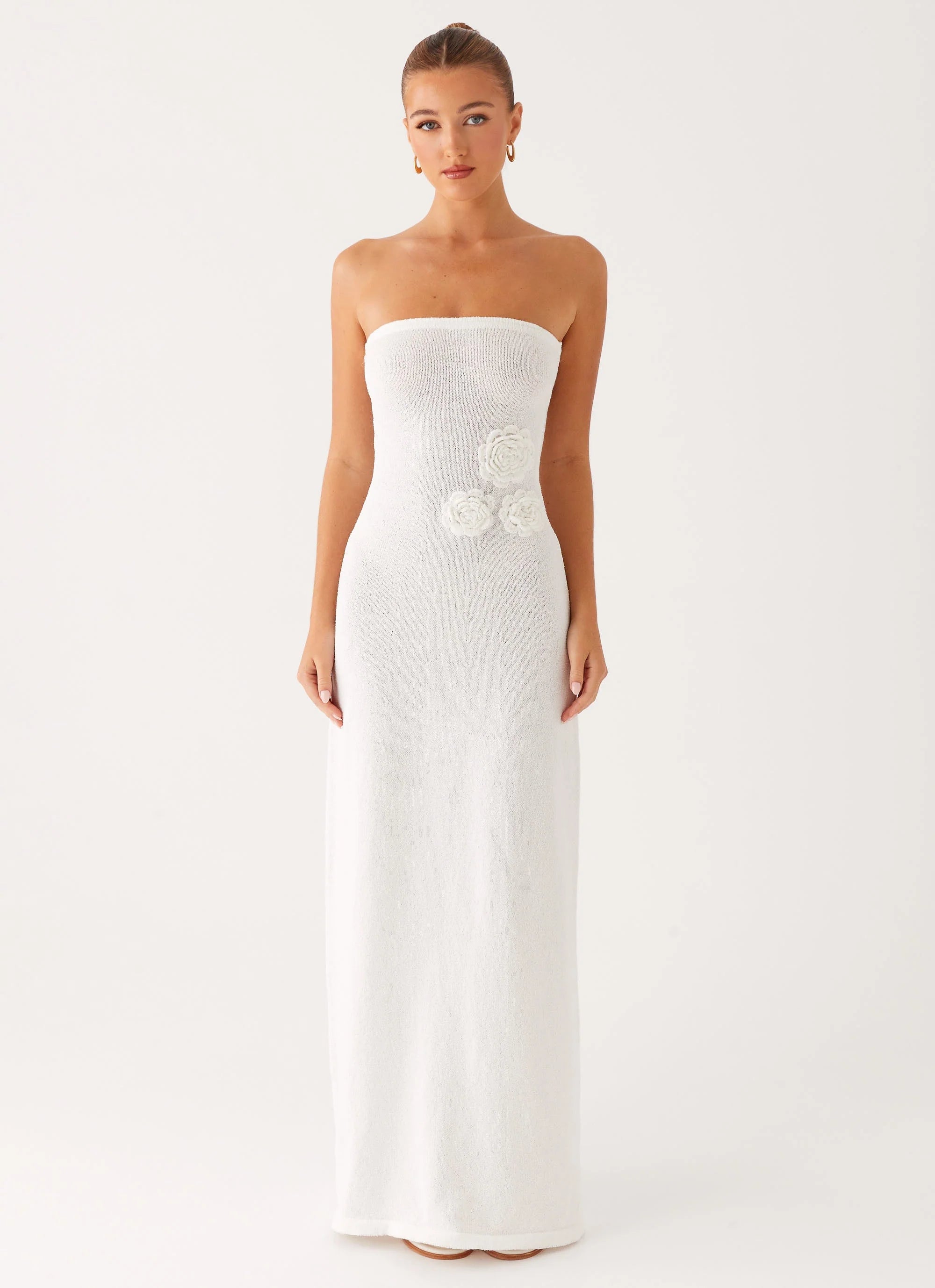 The Arli Strapless Maxi Dress is the perfect balance of elegance and comfort. Featuring a strapless neckline and crafted from a stretch thick knit, it offers a flattering, figure-hugging silhouette.