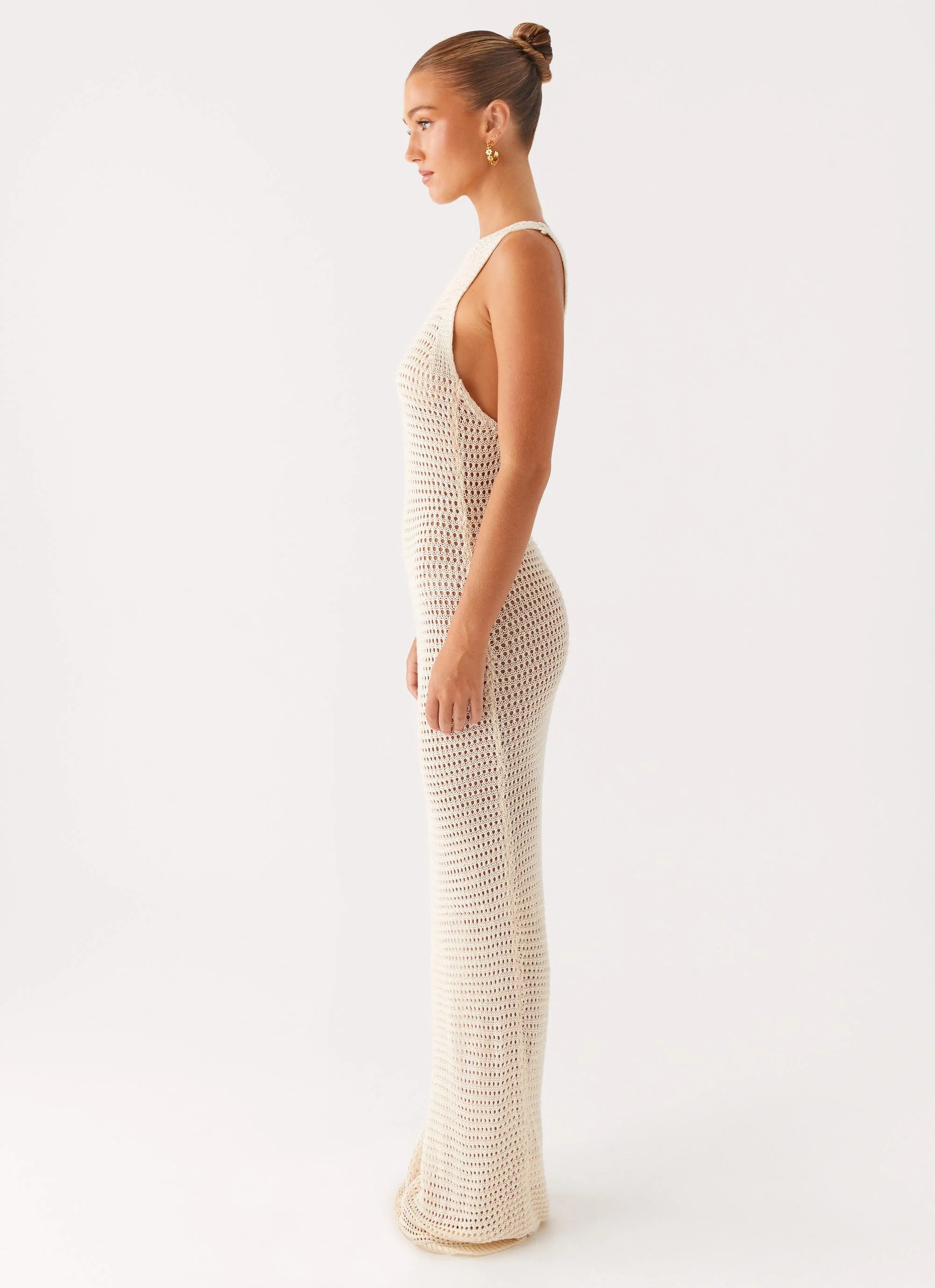Beach House Crochet Maxi Dress: The Beach House Crochet Maxi Dress combines effortless boho vibes with a sheer crochet material and wide neckline, creating an open-back design that's perfect for beachside escapes or casual summer events.