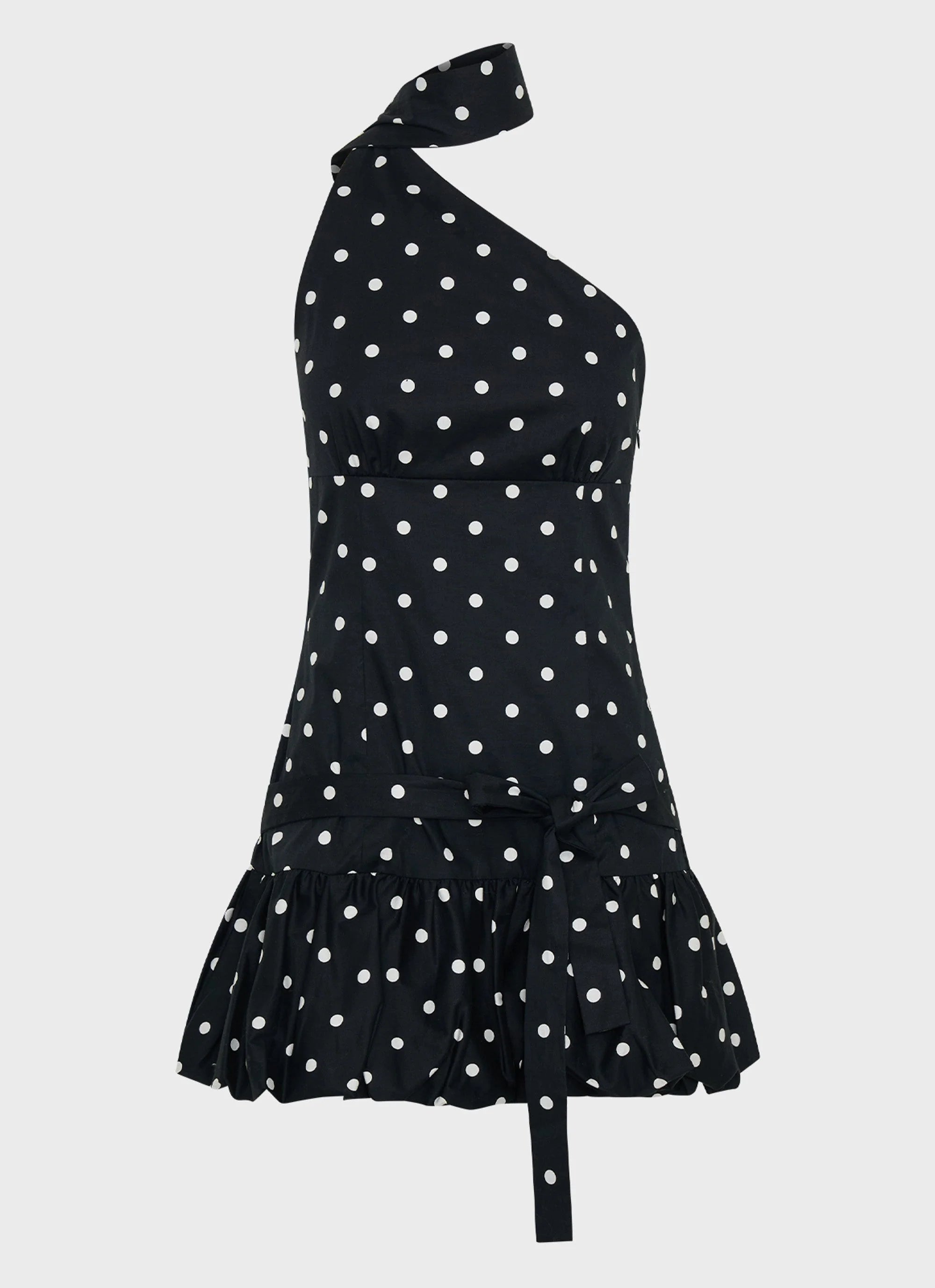 The Belina Scarf Mini Dress is a playful yet elegant piece. Featuring an off-shoulder neckline, a drop waist for a relaxed fit, and a bubble skirt that adds volume and movement, this dress is made for those who love to stand out.