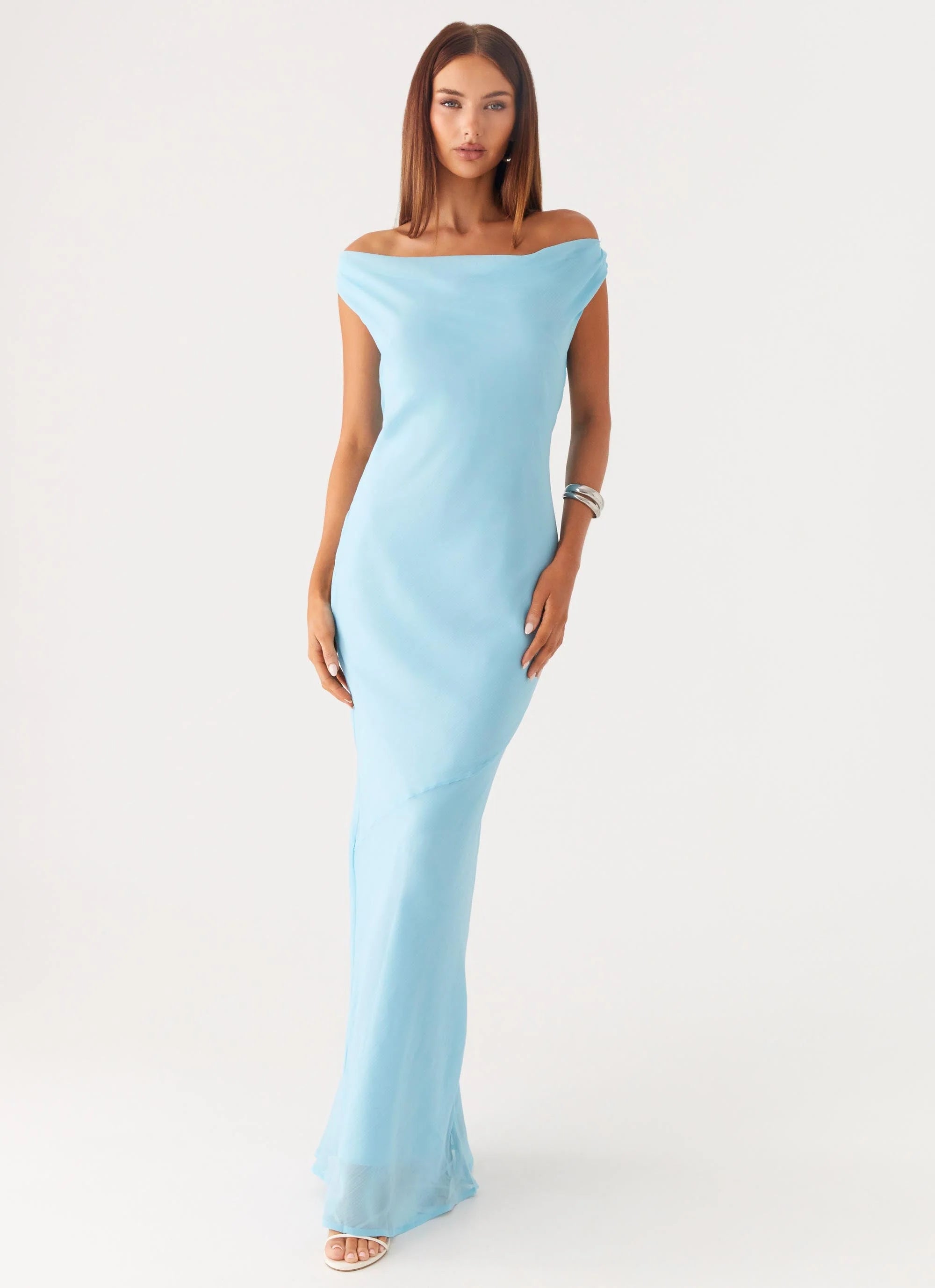 Meet the Brittany Chiffon Maxi Dress. With an effortlessly elegant off-shoulder neckline and a sultry low back, this fully lined design drapes beautifully, made to captivate from sunset to sundown.