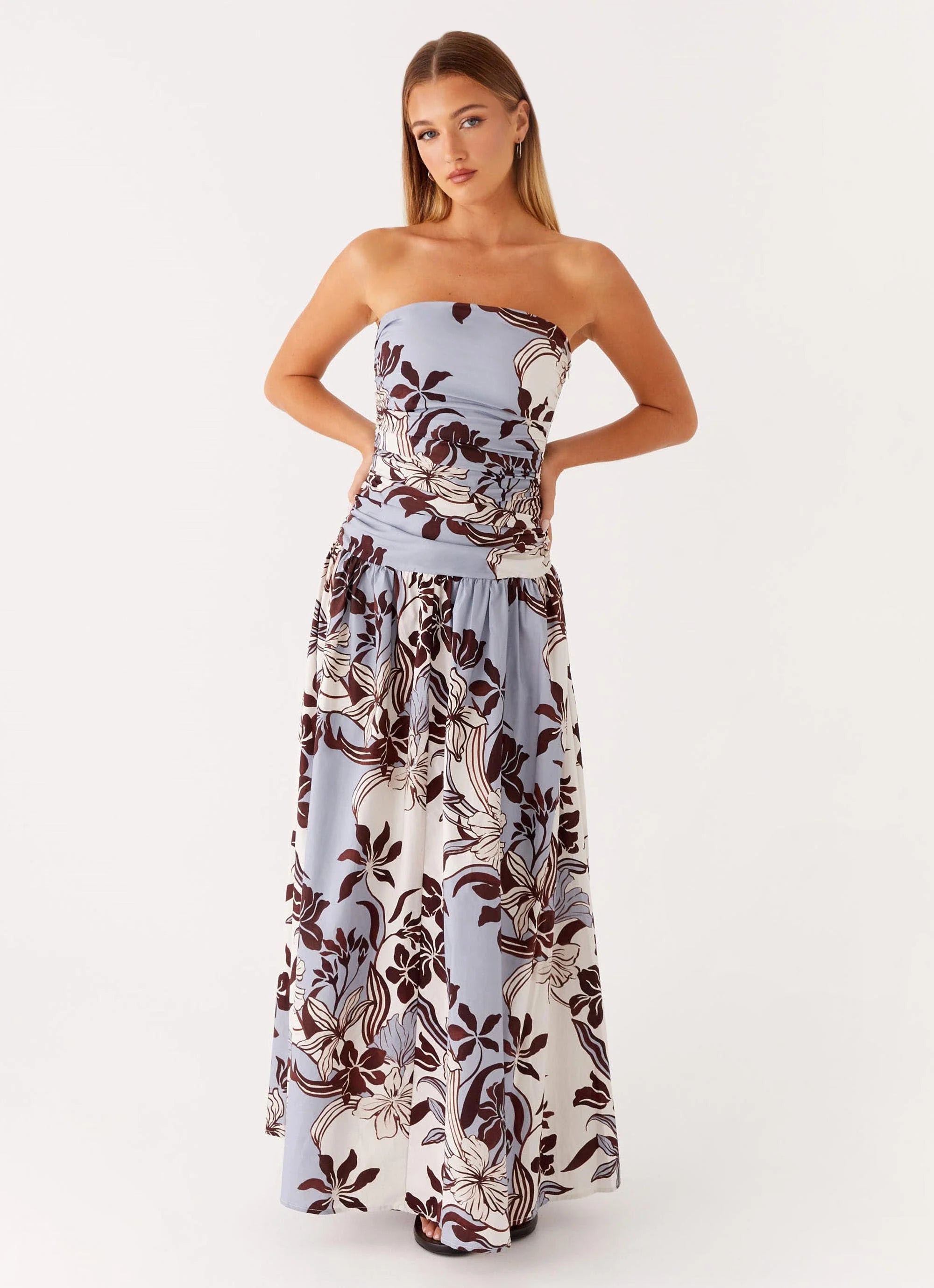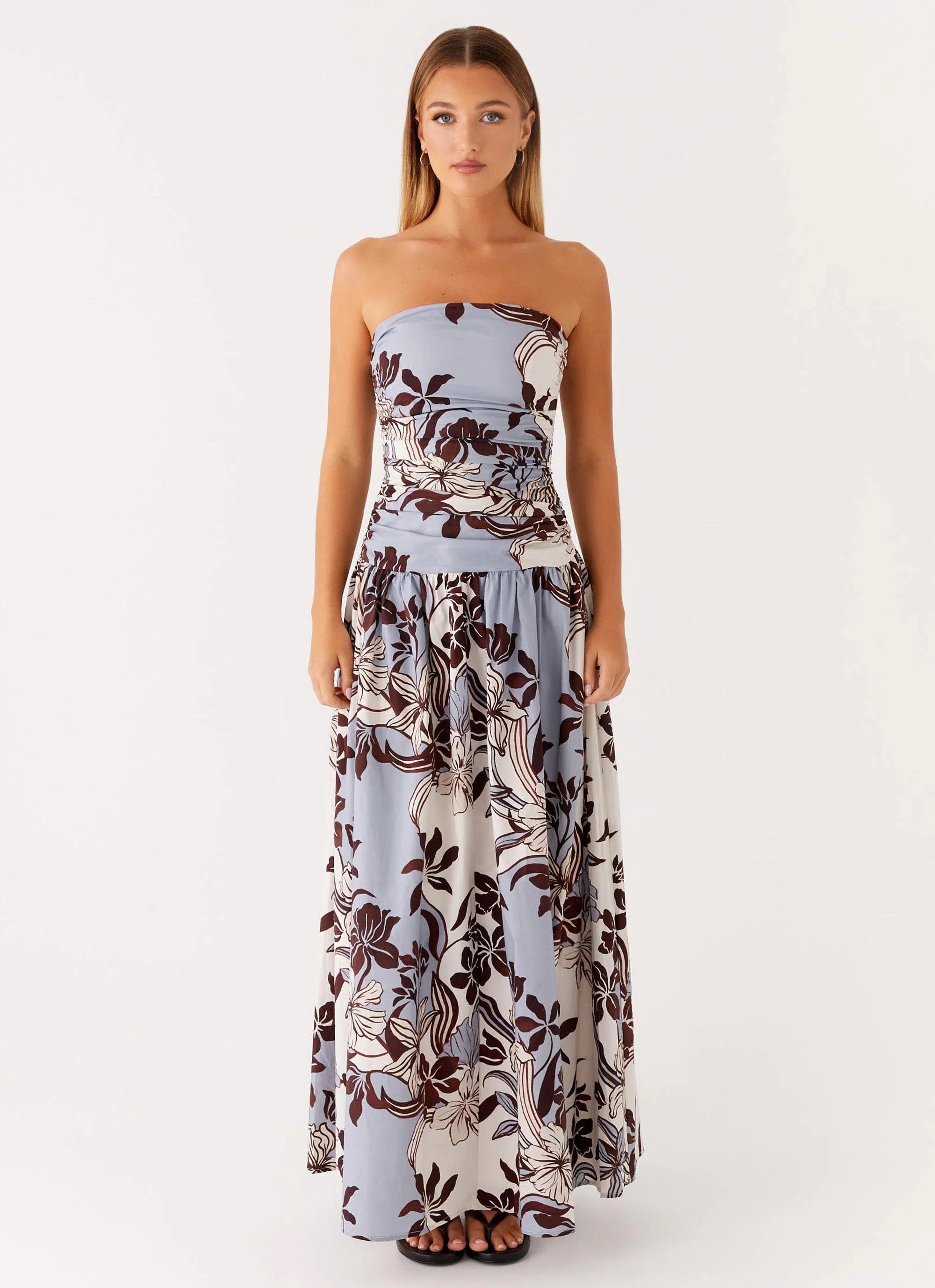 The Carmel Maxi Dress is a sleek strapless silhouette with ruched sides and a flared skirt for elegant movement. Finished with silicone taping and an invisible zipper, it's the ultimate day-to-night style.