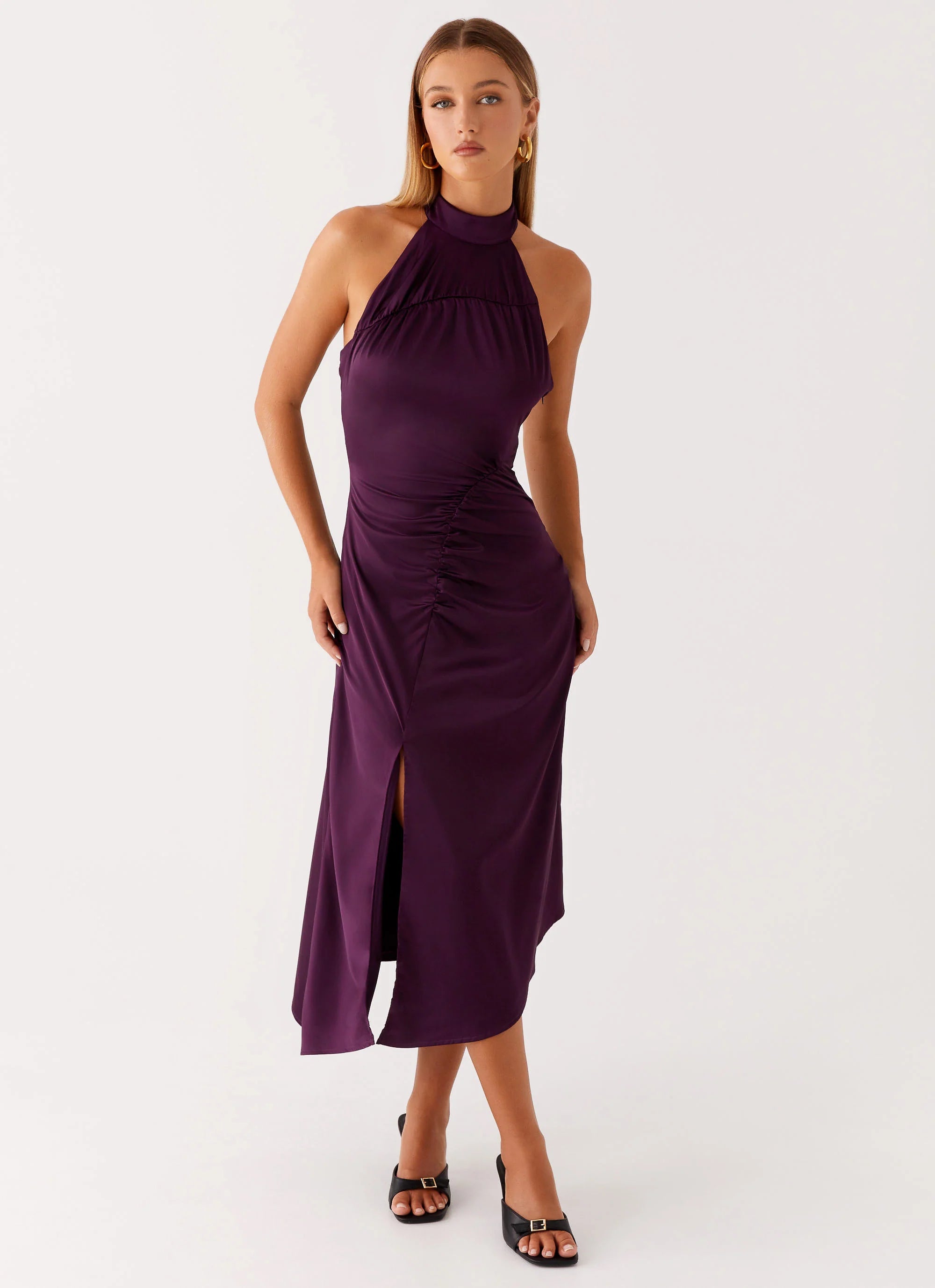 The Casta Halterneck Midi Dress is the perfect mix of sultry and sophisticated. Featuring side ruching and an open back, it contours beautifully for a flattering silhouette. Made for golden nights and unforgettable moments.