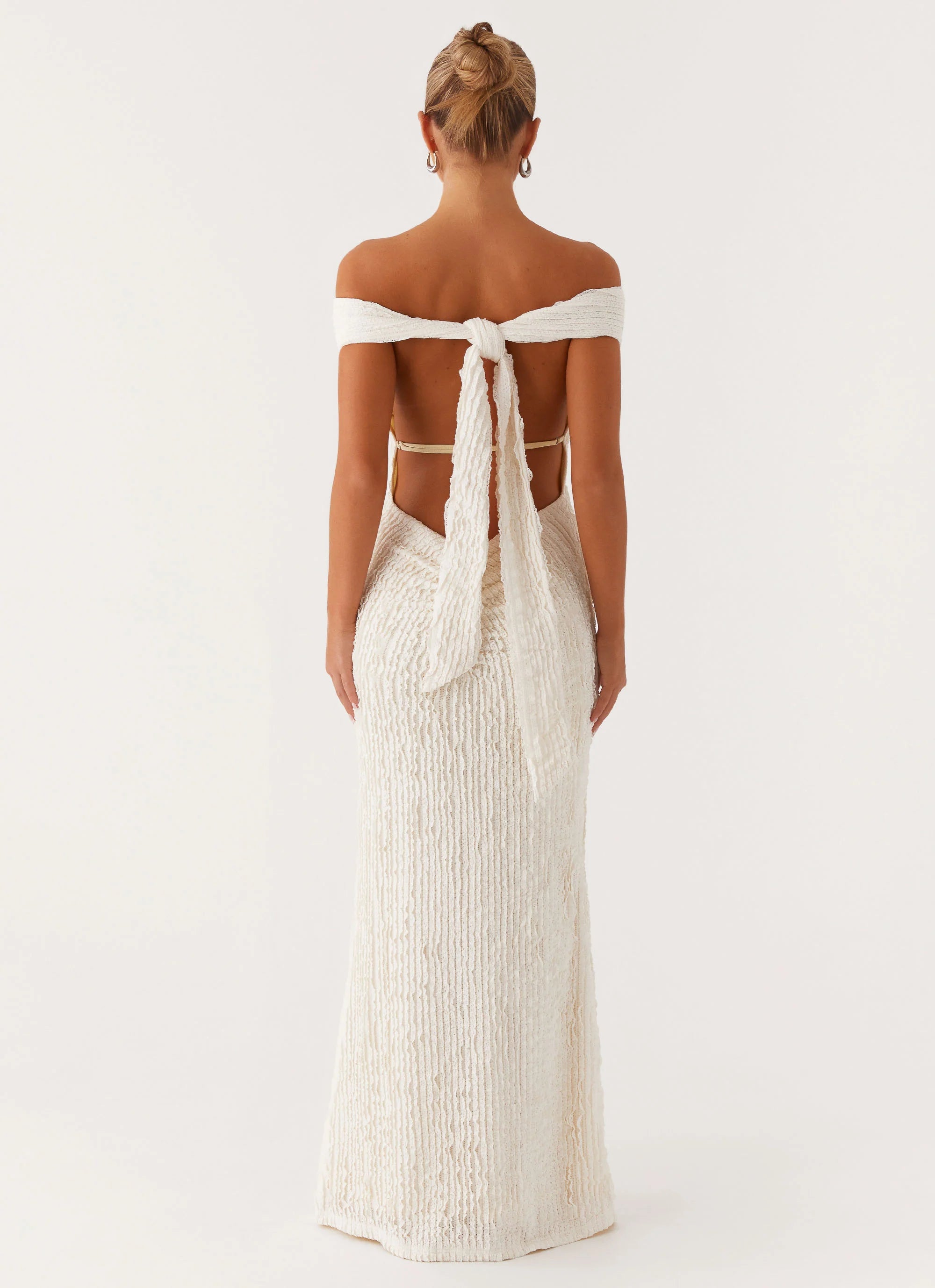 The Chantelle Maxi Dress exudes elegance with its off-shoulder neckline and beautifully ruched underbust design. This flowing silhouette flatters your figure while allowing for comfortable movement, making it perfect for sunset gatherings or special nights out.
