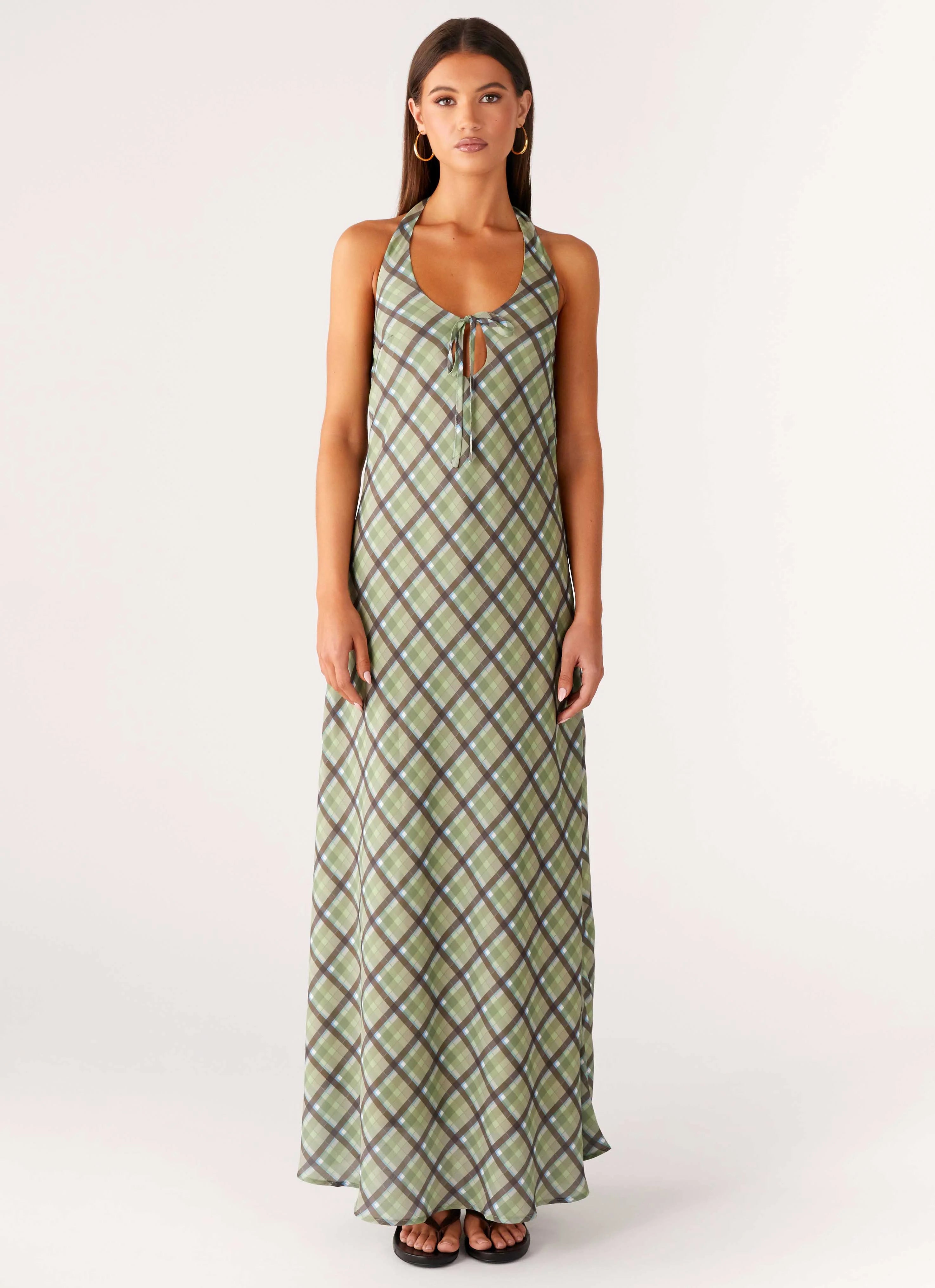 The Coralie Maxi Dress flows with evening elegance. Featuring a V neckline with a front tie and thick neck tie strap, this fully lined silhouette is crafted in our exclusive print with a flattering low cowl back for effortless after-dark style.