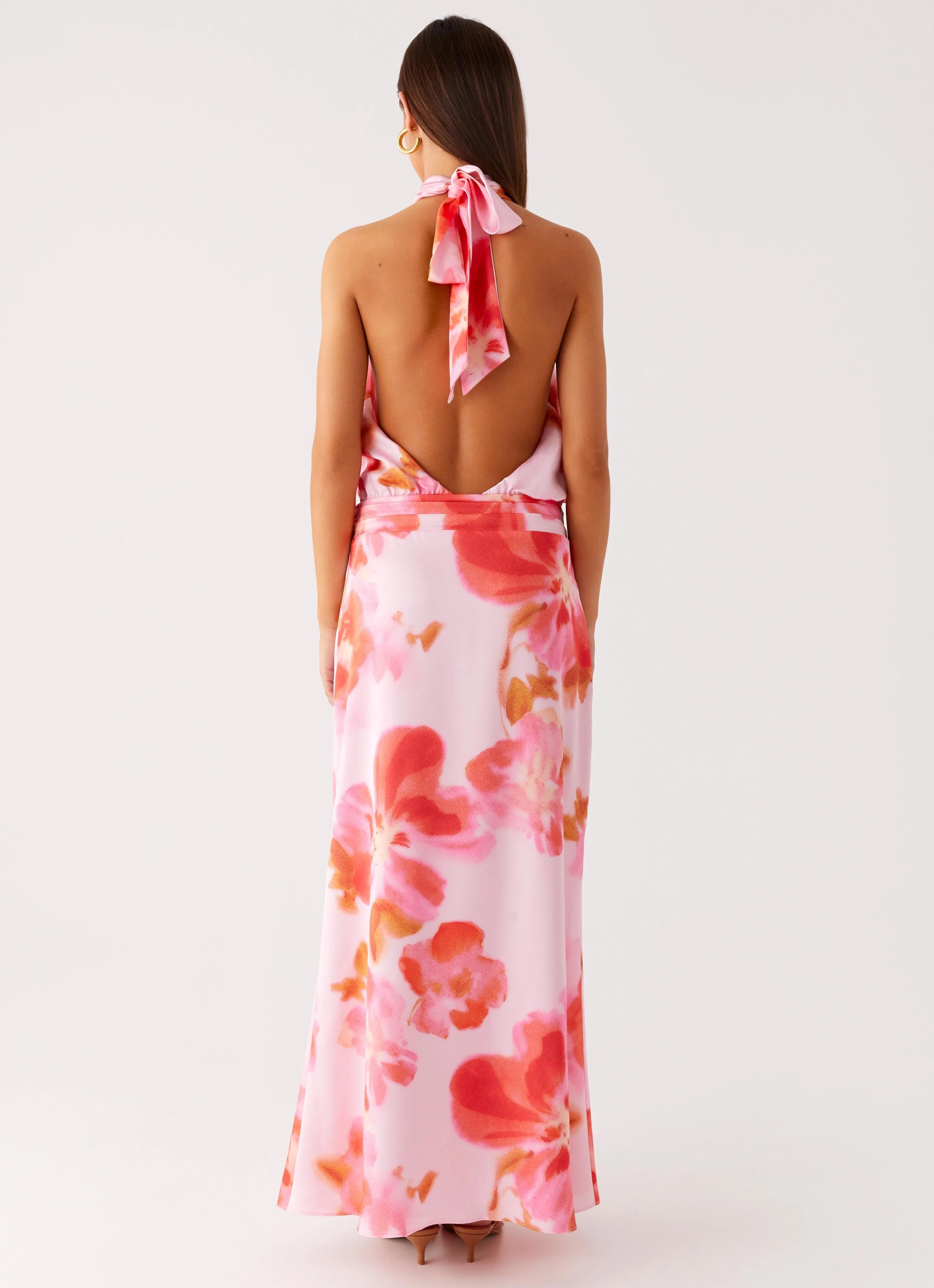 Designed to captivate from dusk ‘til dawn, the Diablo Backless Maxi Dress is your elevated answer to after-dark dressing. With a sleek halter neckline, open low back and front tie waistband, this satin maxi glides over the body for a luxe, luminous finish. The exclusive print makes it a statement piece made for unforgettable nights.
