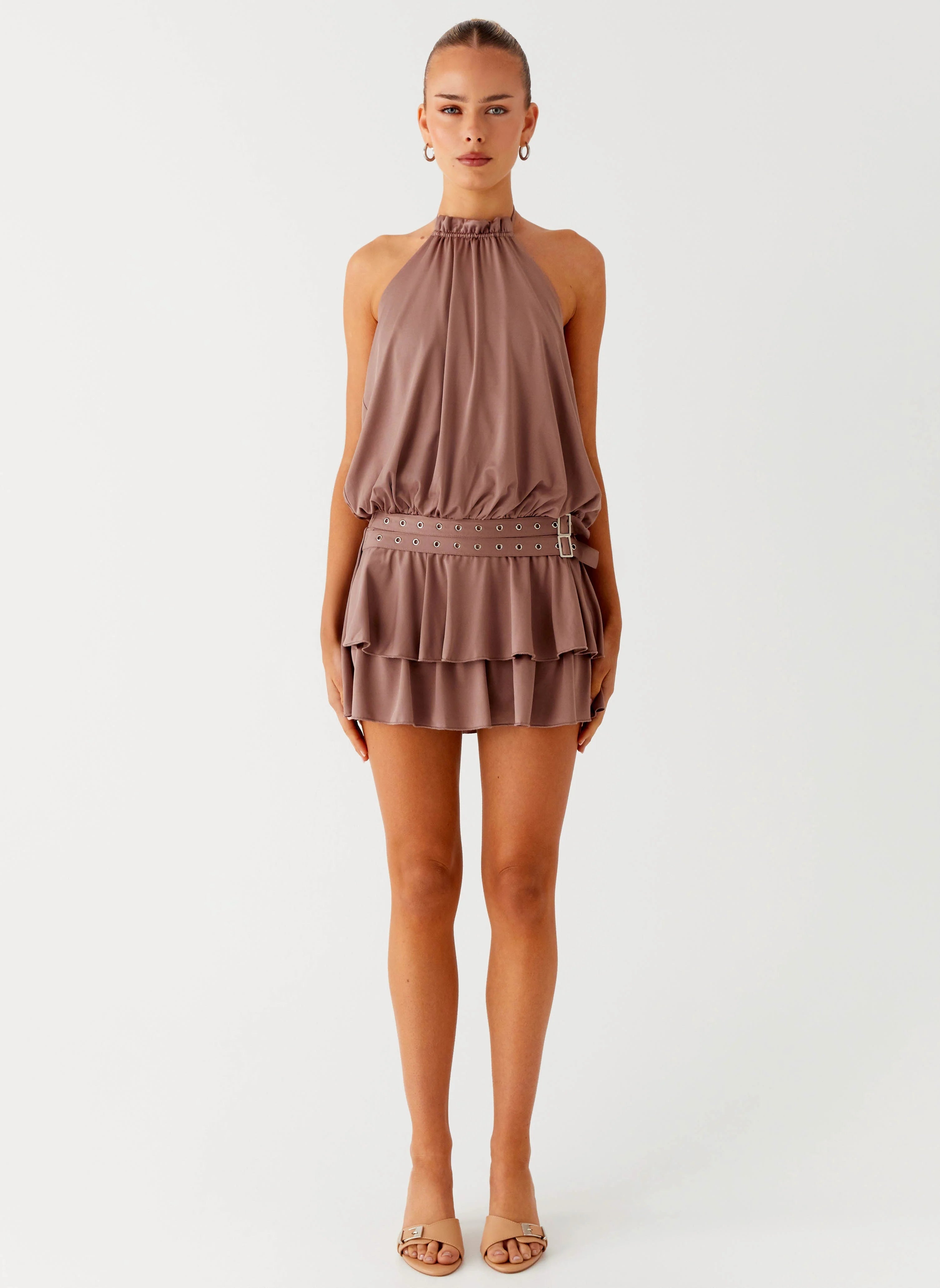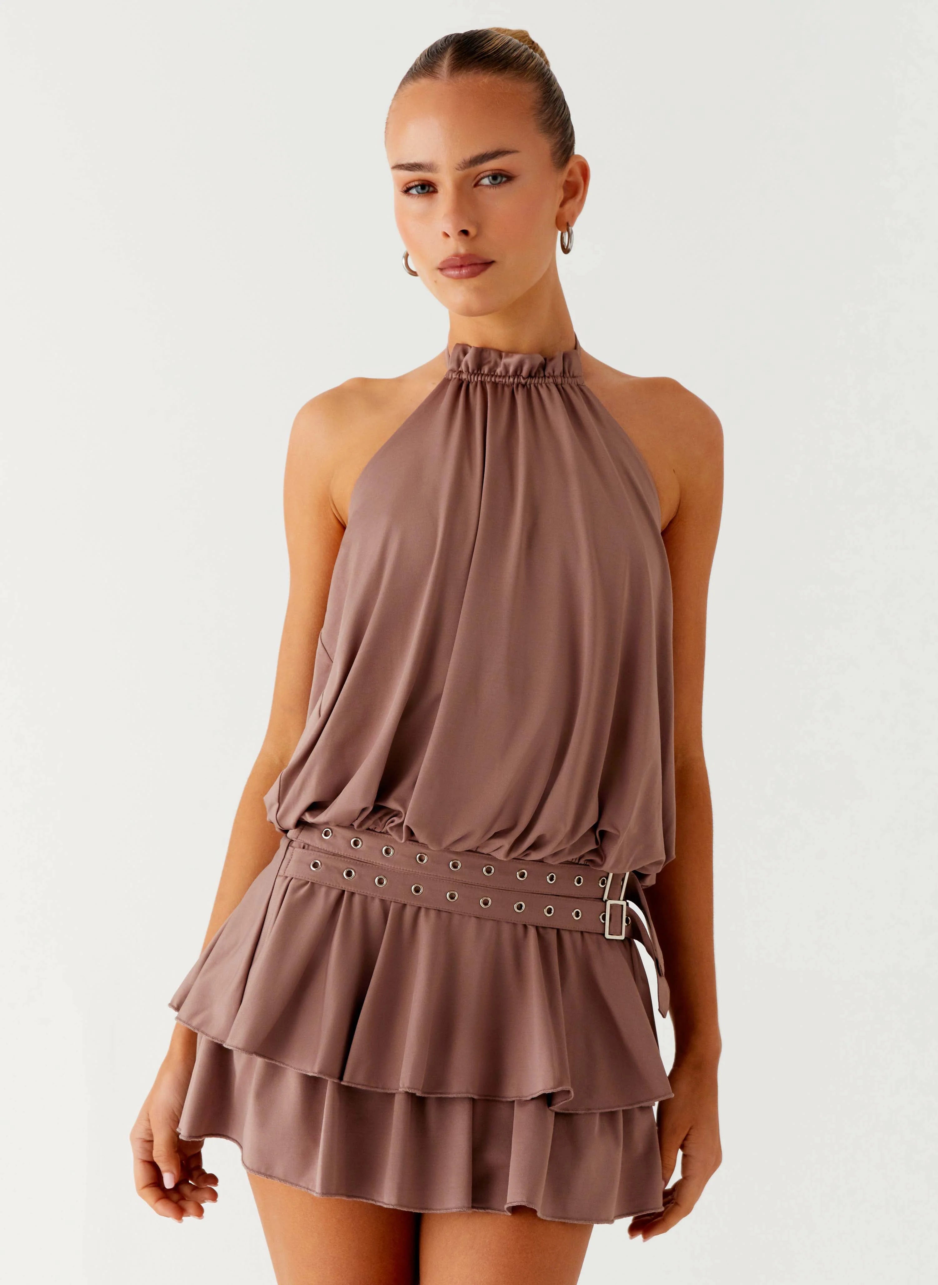 The Dopamine Belt Mini Dress is your go-to for nights that shimmer under golden skies. Featuring a halter neckline with adjustable back straps, this mini dress boasts an elasticated back neckline and waistband for a flattering fit, finished with a low back and adjustable buckle belt for added style.