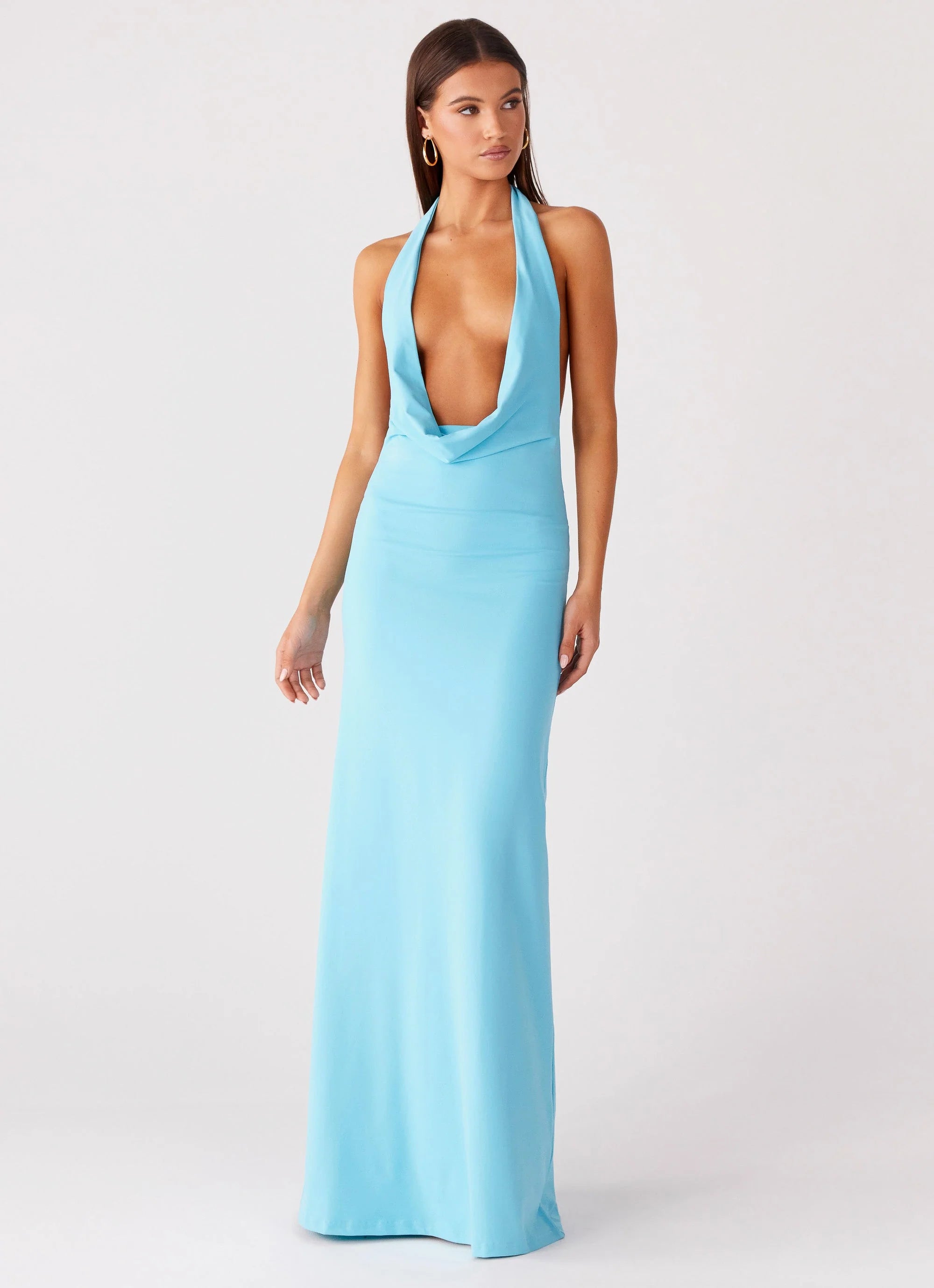 The Driftwood Cowl Maxi Dress is made for nights that flow with effortless charm. Featuring a low cowl front neckline with halter and adjustable thin back straps, this fully lined stretch jersey maxi is designed for comfort and style.