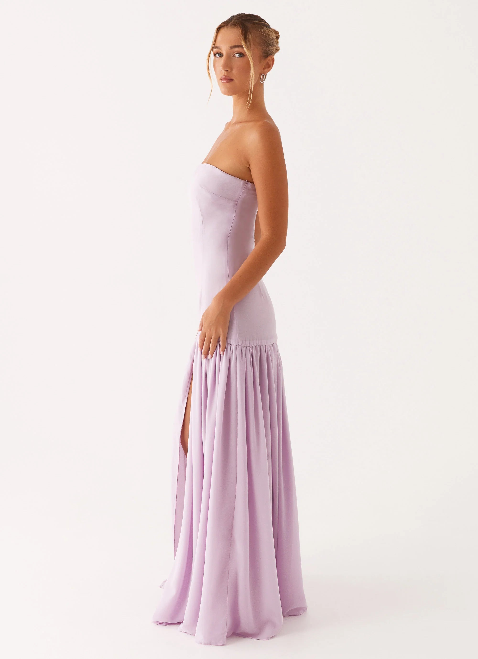 The Eden Strapless Maxi Dress is pure elegance with an edge. The strapless neckline highlights your shoulders, while the lined bodice offers a smooth, flattering fit. A daring front split adds a touch of sultry movement, making this dress perfect for when the night calls for something unforgettable.