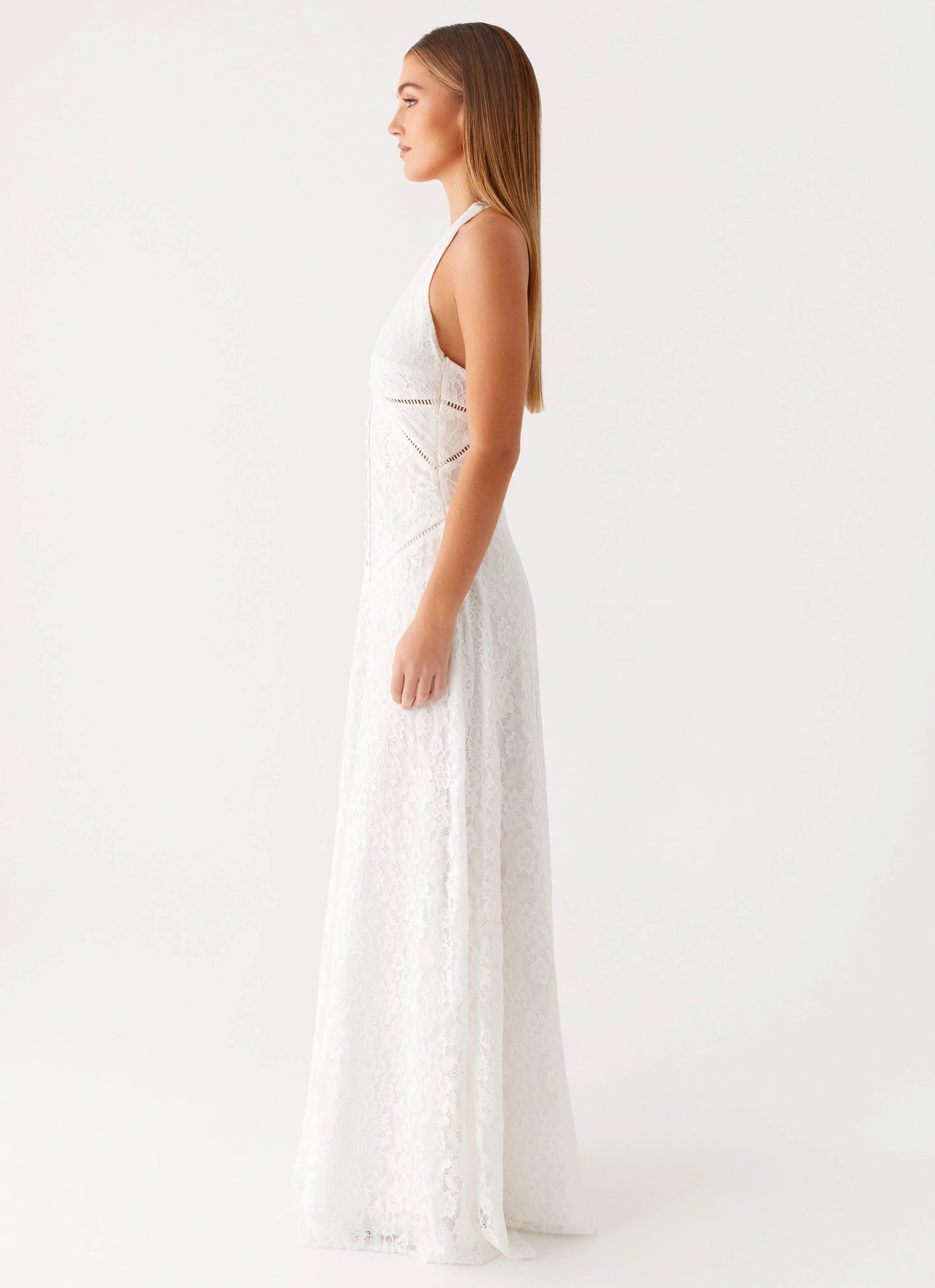 The Ember Valley Maxi Dress captures the essence of balmy nights. Featuring lace detailing, a V neckline with thick neck tie straps, front button embellishment, and an A-line skirt. This fully lined dress is crafted for effortless evening elegance.