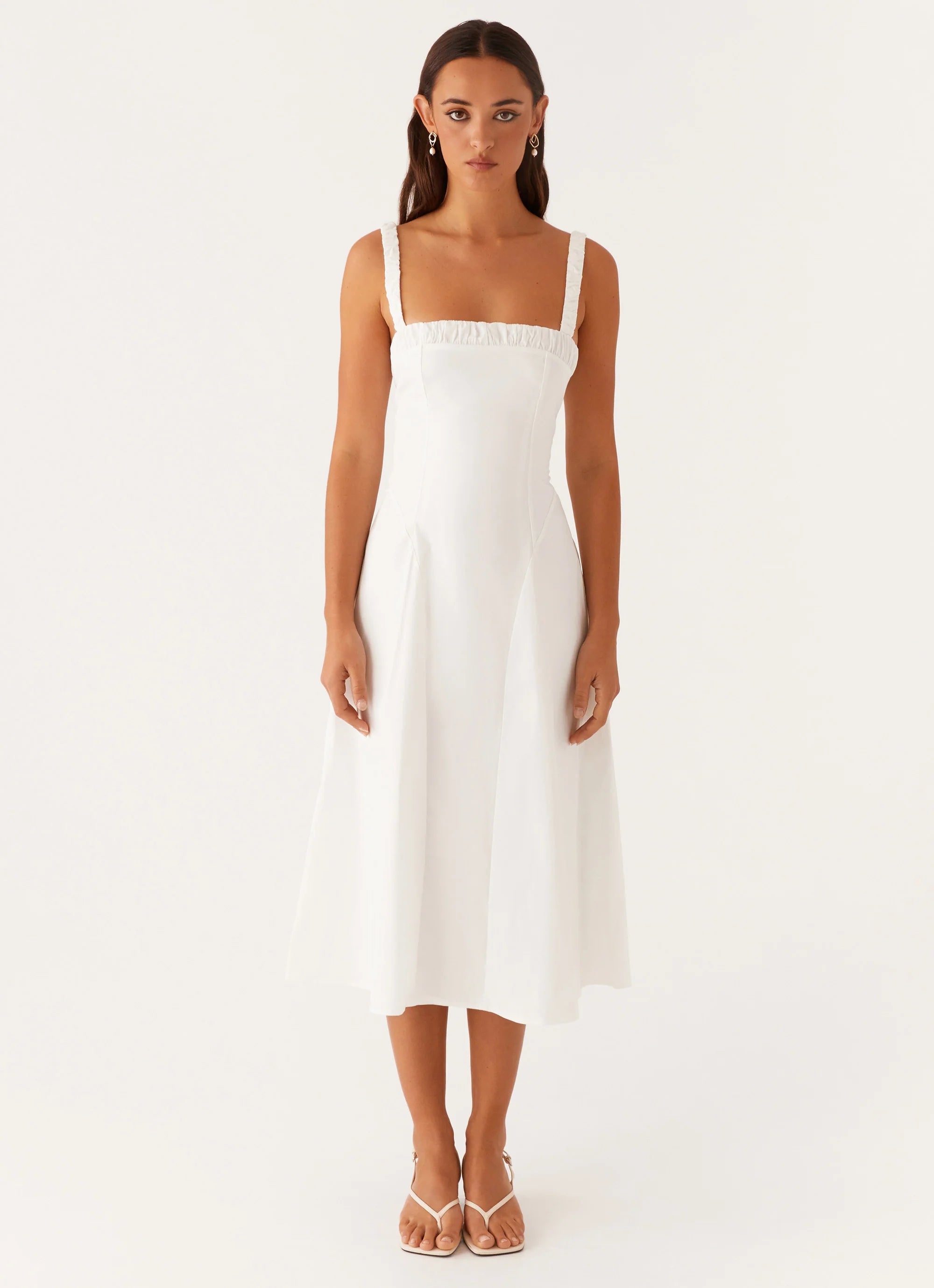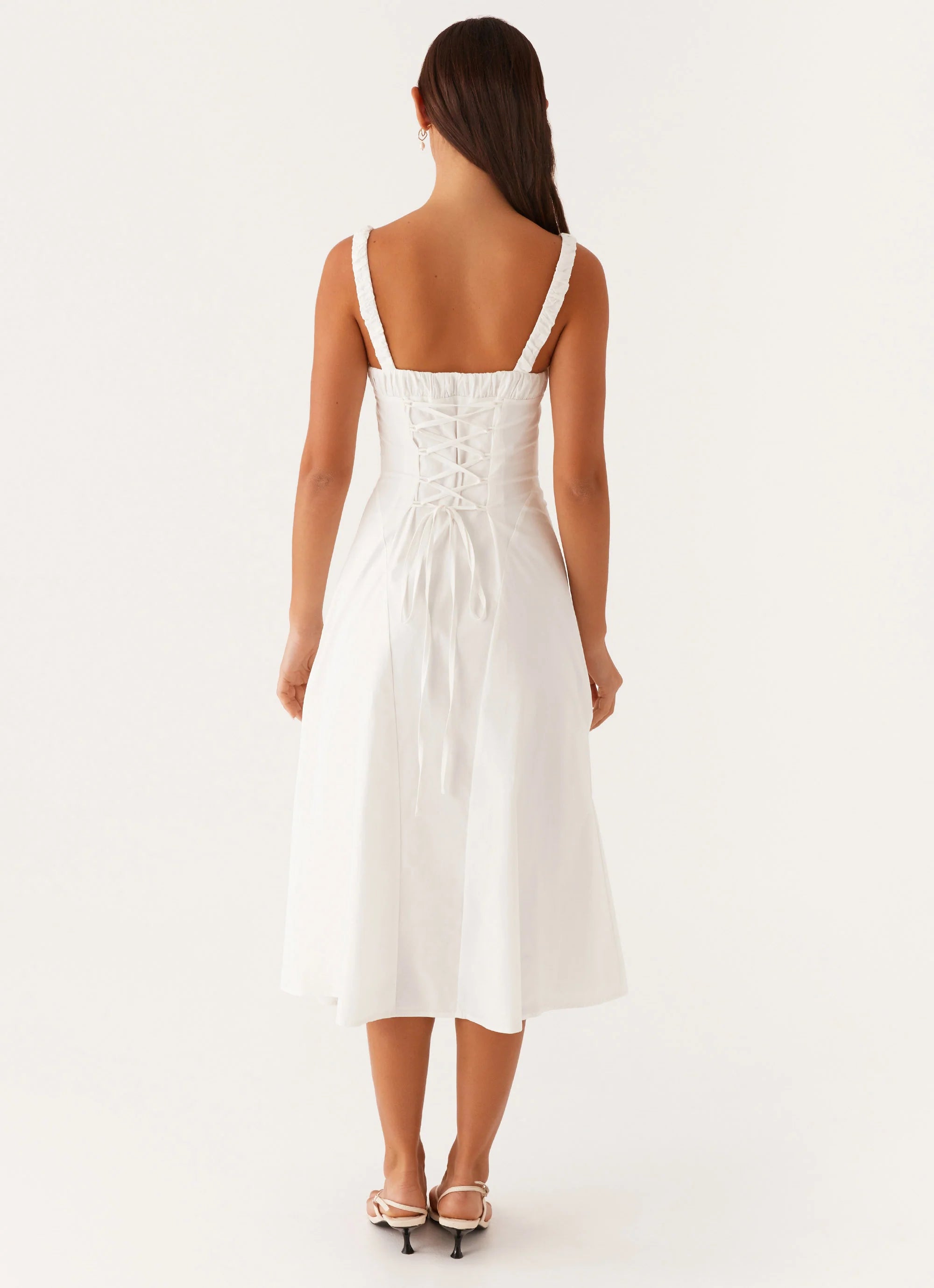 The Enola Midi Dress features a chic square neckline that frames the face beautifully and a back corset detailing for a flattering fit. This dress flows gracefully to a midi length, making it a versatile choice for both day and night outings. Embrace your style with a piece that effortlessly combines elegance and allure.