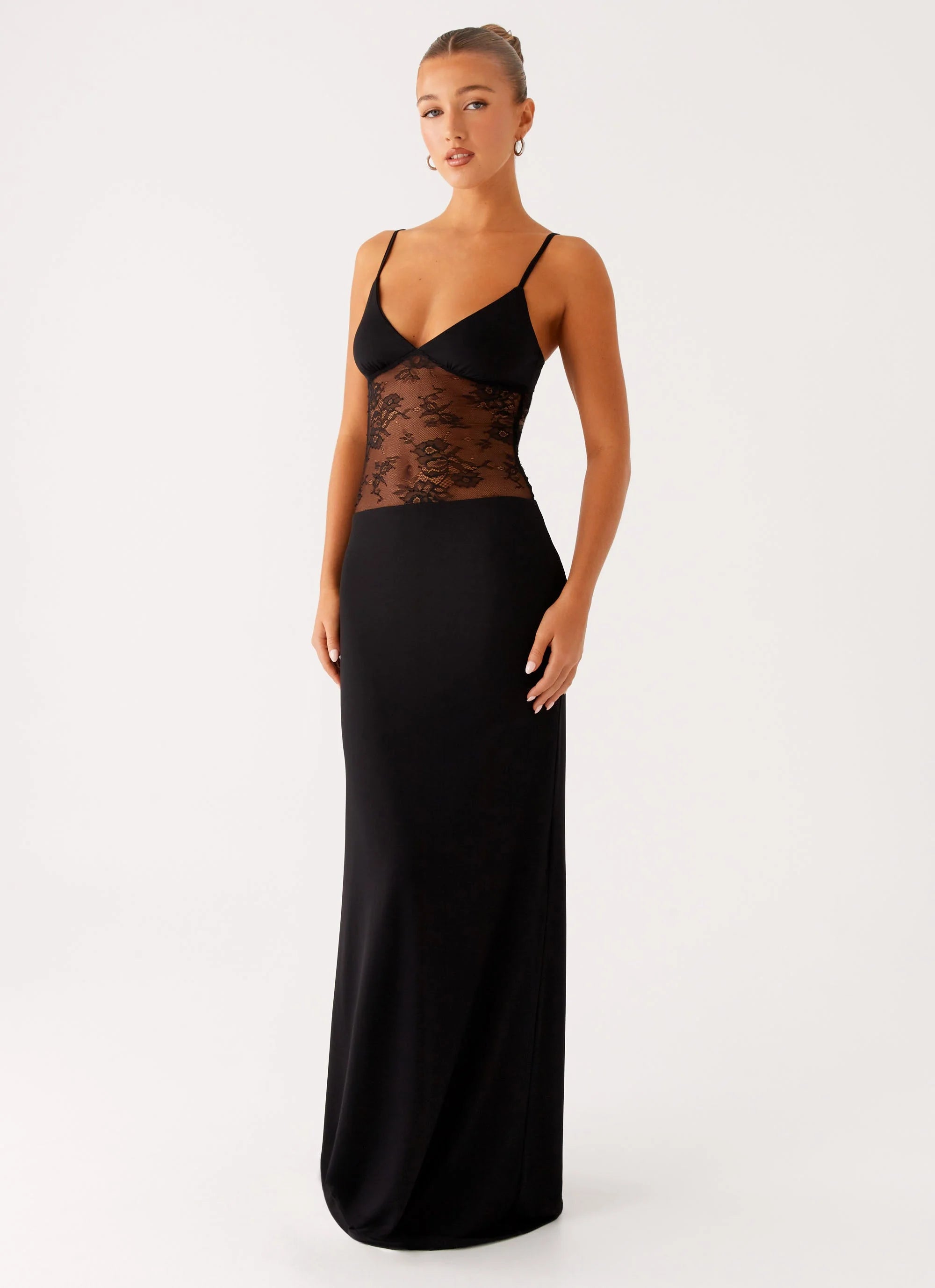 The Envy Maxi Dress is a captivating blend of elegance and allure. Featuring a plunging V-neckline and a semi-sheer bodice, it offers just the right amount of intrigue while maintaining a refined silhouette.