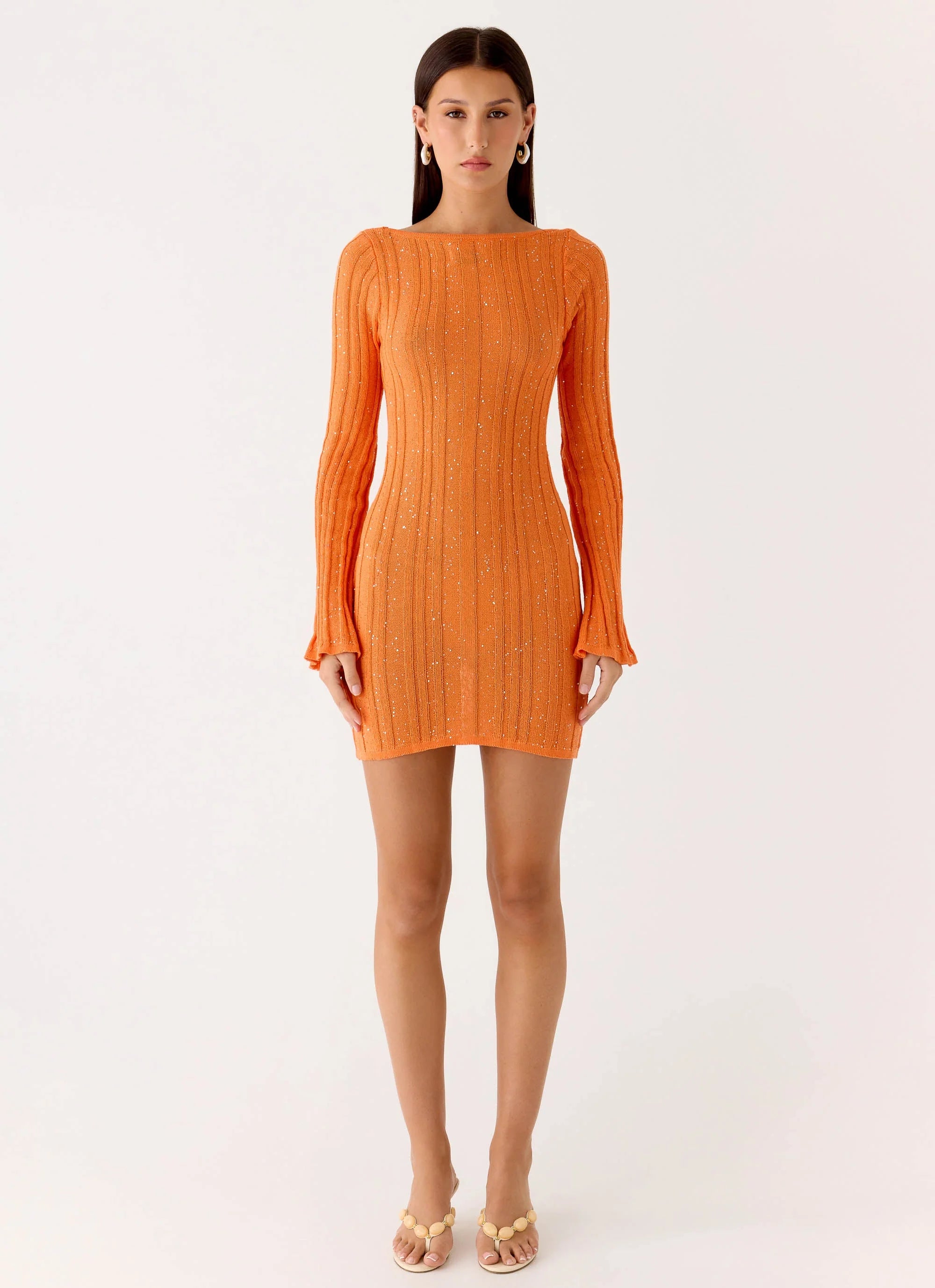 The Estrella Long Sleeve Knit Mini Dress is a chic and contemporary piece for day-to-night styling. With a fitted mini length, long sleeves, and a low back, this dress offers a sleek silhouette perfect for casual outings or evening events.