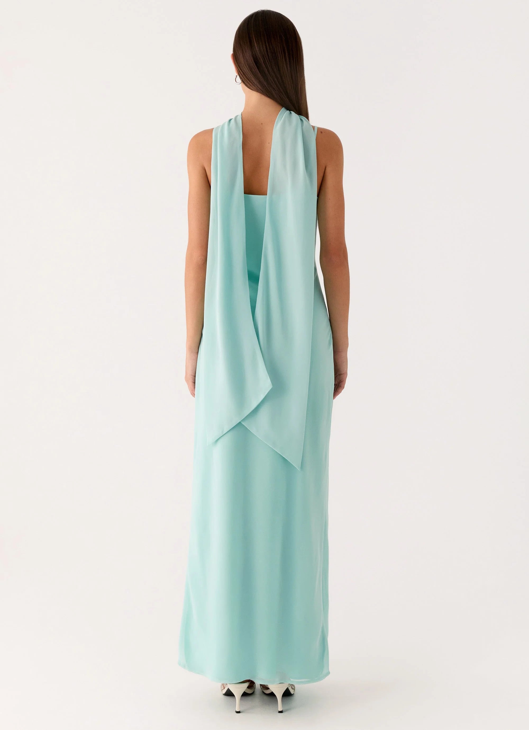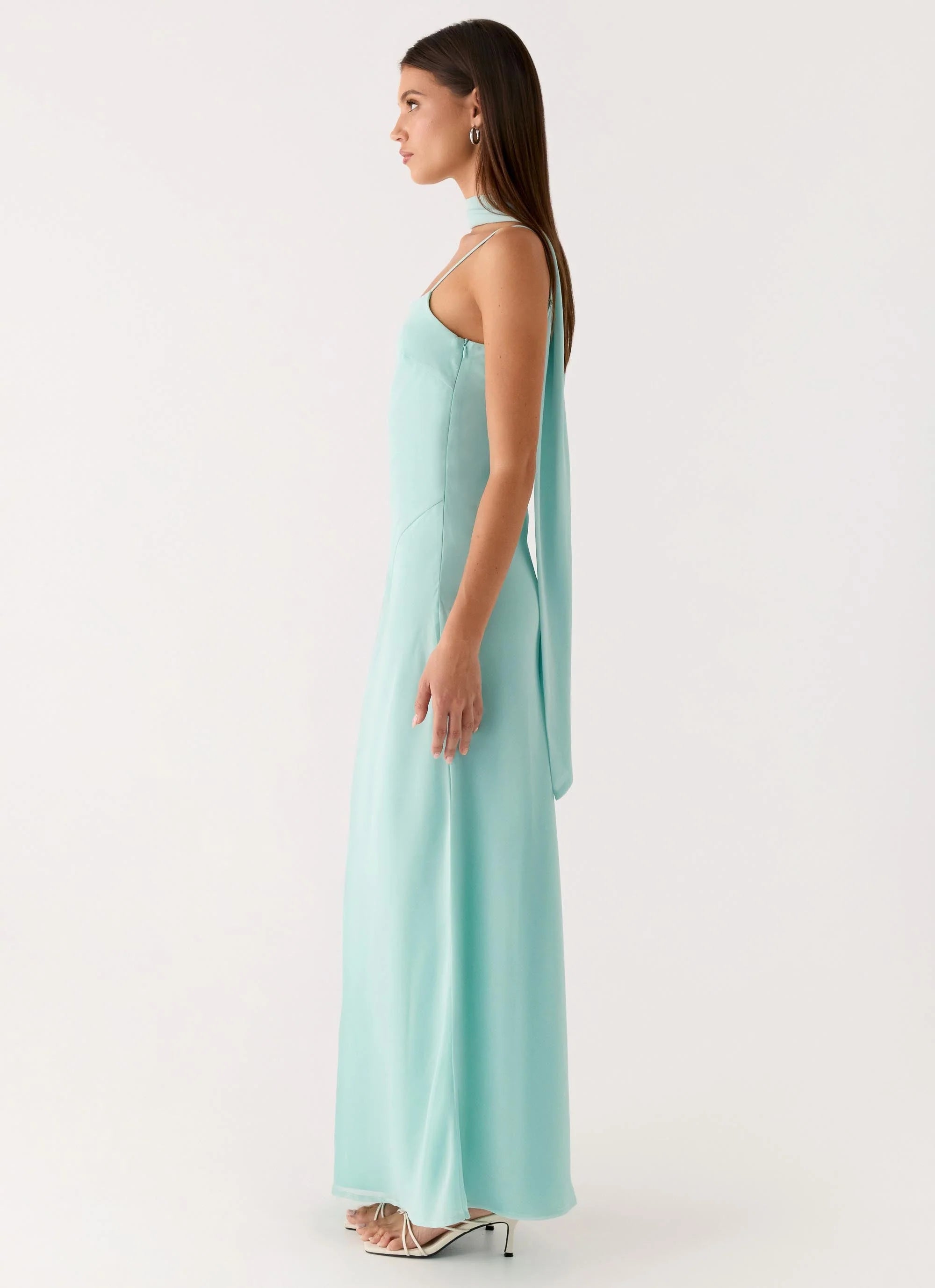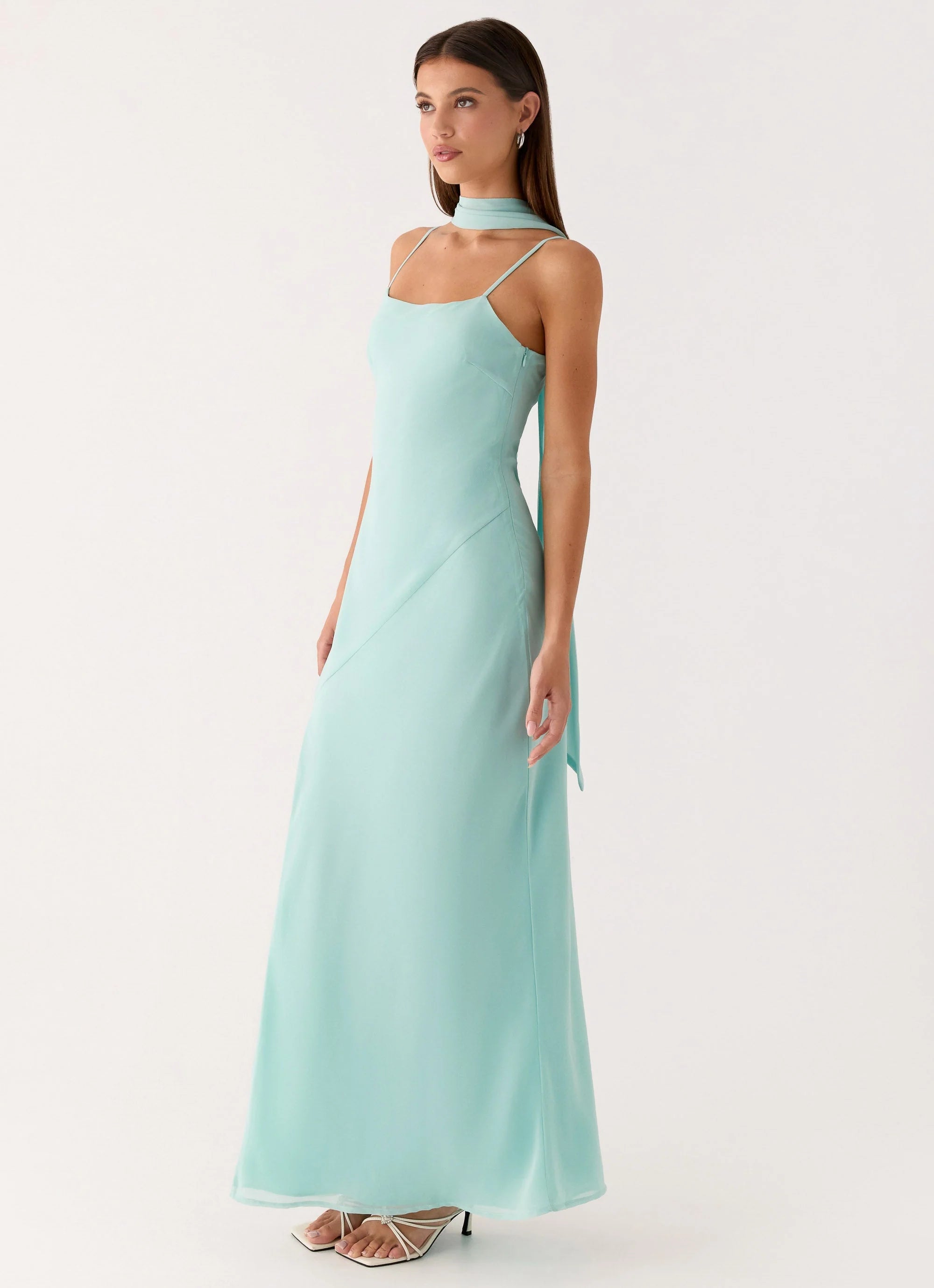 The Eternelle Square Neck Maxi Dress is a chic and elegant choice for any occasion. Featuring a square neckline with scarf detailing, thin adjustable straps, and a high slit, this fully lined maxi dress combines sophistication with effortless movement.