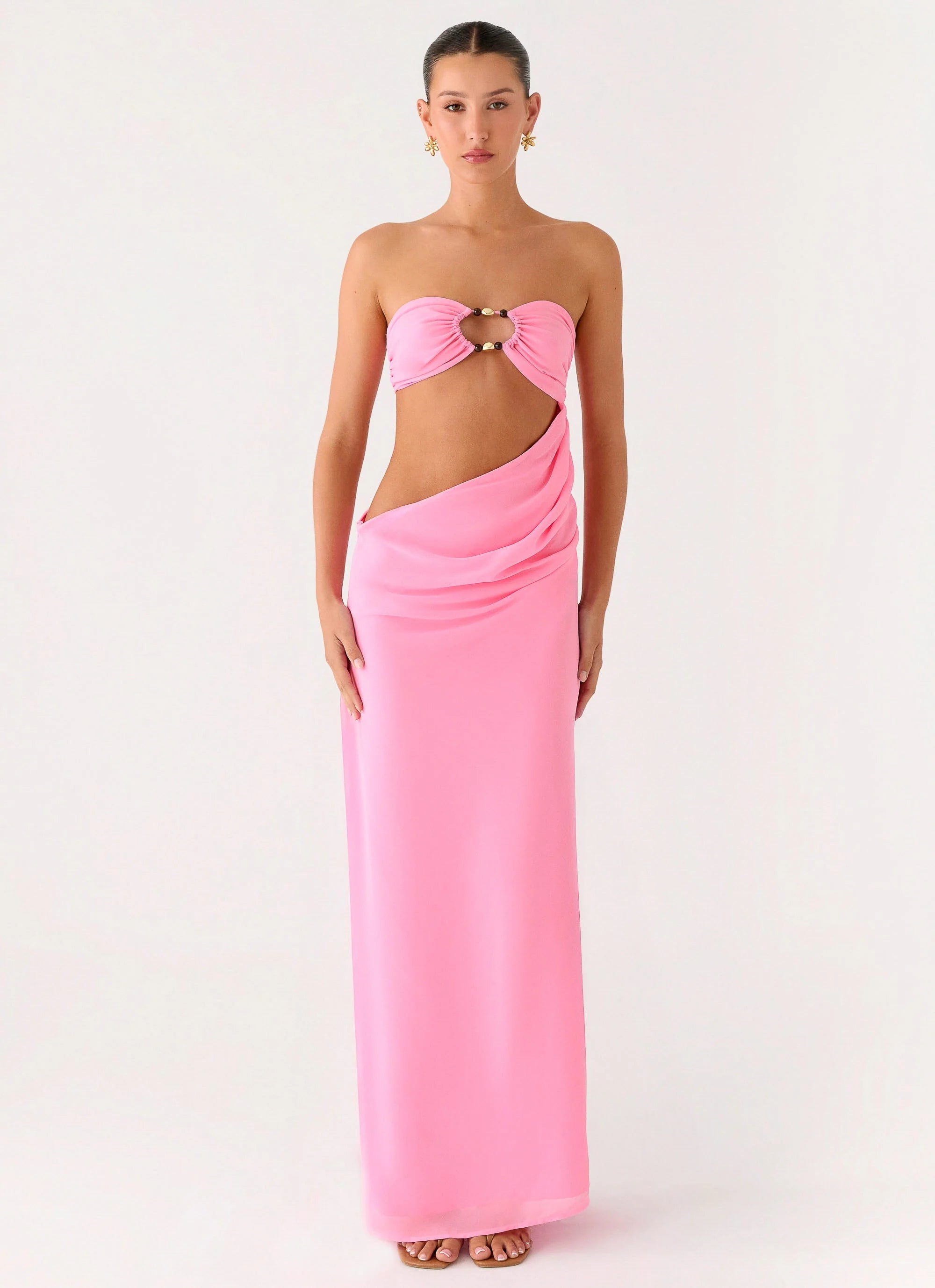 The Falling Forever Strapless Beaded Maxi Dress is an elegant, show-stopping choice for special occasions. Featuring a sweetheart neckline with silicone taping, intricate front beading, and side cut-outs, this maxi dress exudes glamour. The ruched side skirt, low back with back tie, and fully lined construction ensure a flattering and comfortable fit. Finished with a side hook and eye and invisible zipper closure.