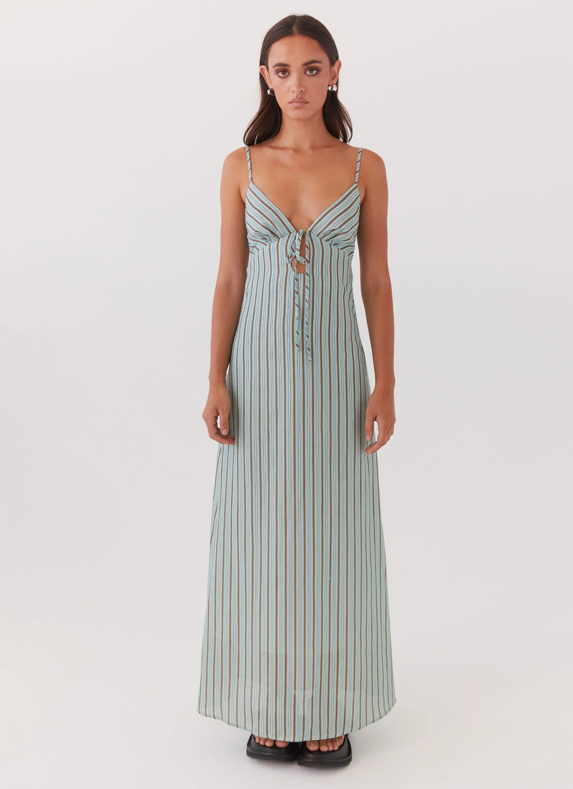 Our best selling Flora Maxi Dress now available in a fresh stripe linen fabric. The flattering fit of this maxi dress makes for an impeccable look for your next event! Style with chunky sandals and simple jewellery.