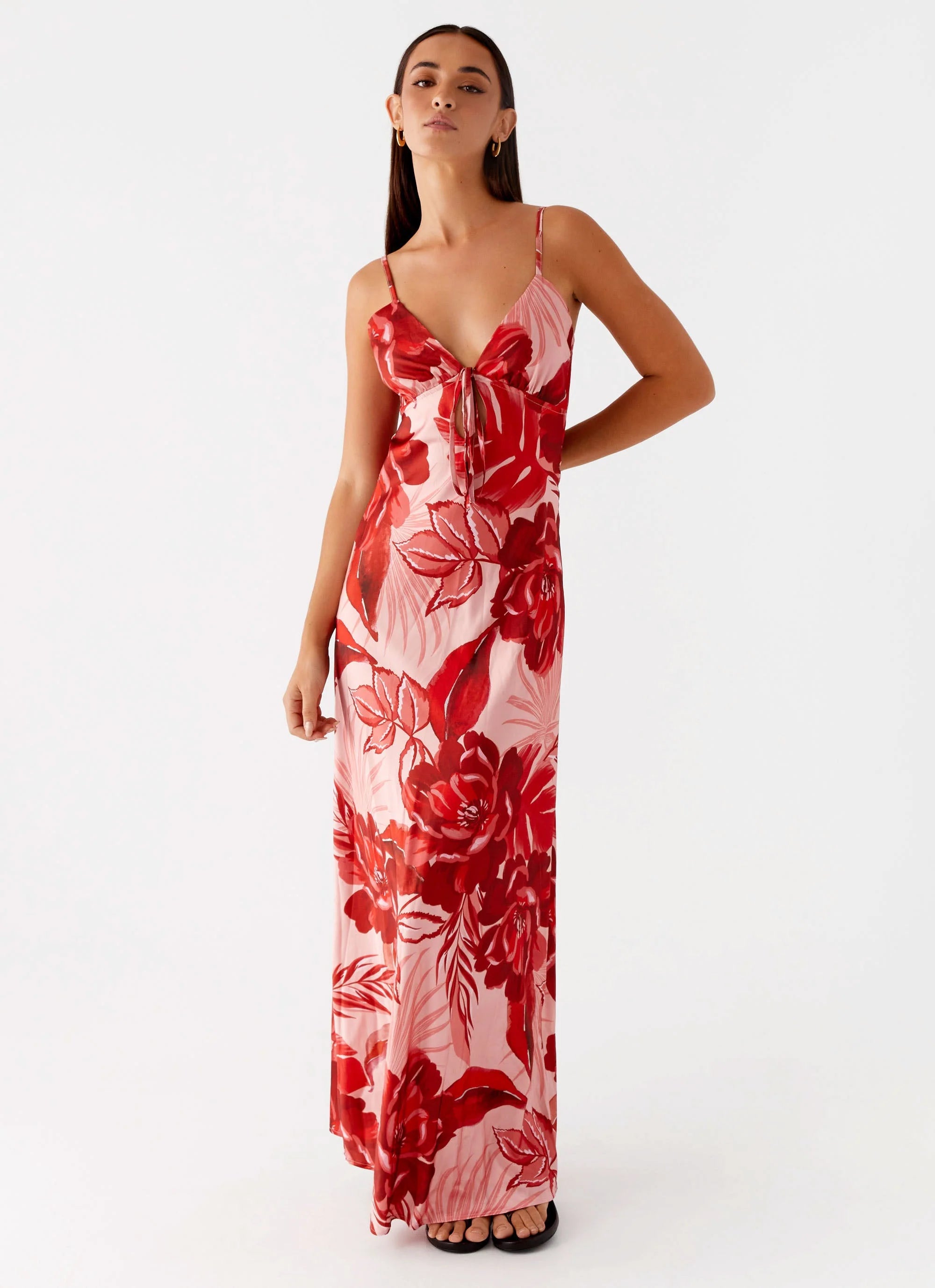 Chasing sunsets and dancing into the night, the Flora Satin Maxi Dress in Sicily Sunsets is made for golden hour and beyond. Cut from silky satin, this maxi dress features a flirty keyhole detail at the bust, an open back, and a flowy silhouette that moves with you from sundown to skyline. Slip it on, light up the night.