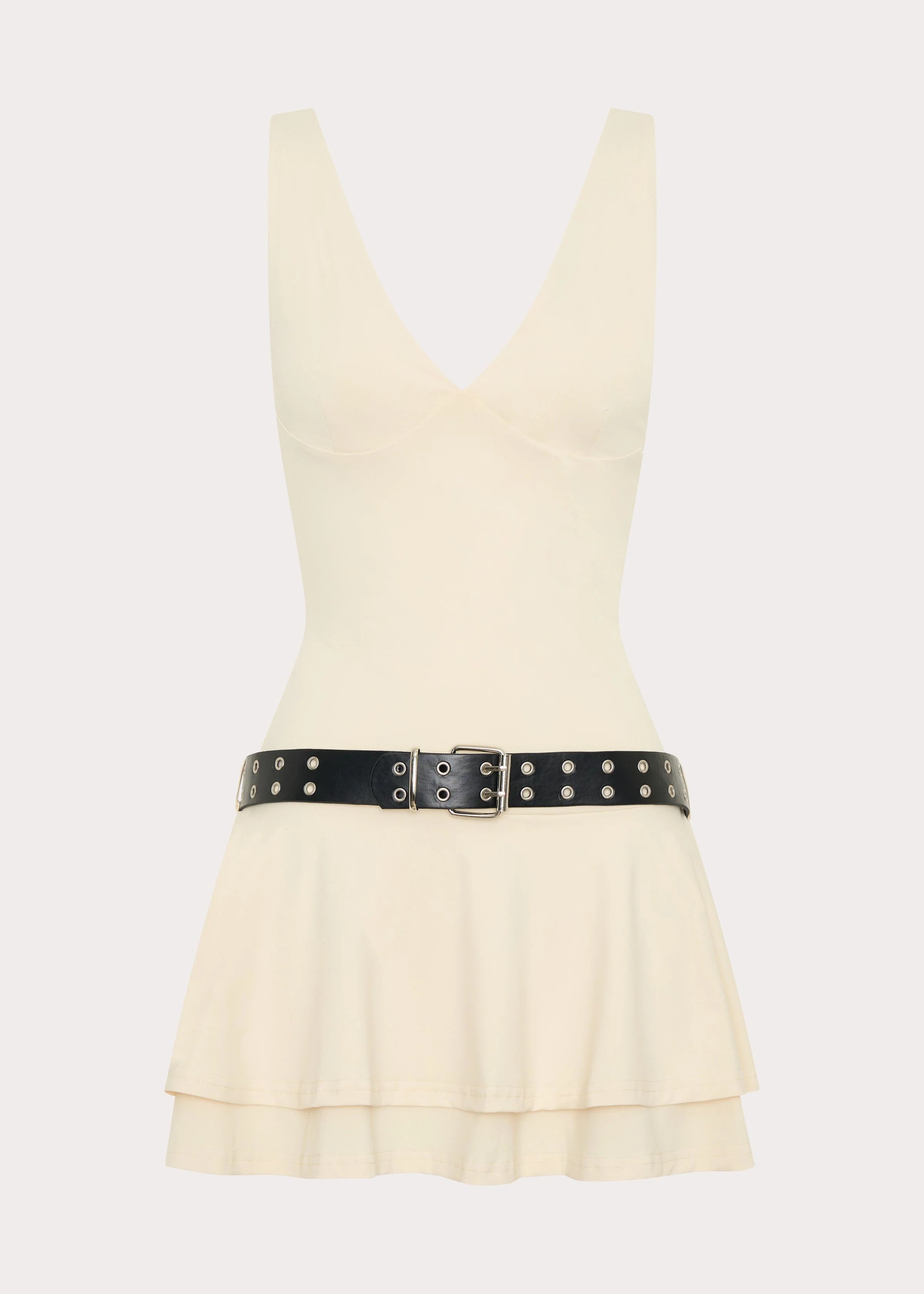 Chic with a hint of edge, the Gold Coast Mini Dress is your go-to for nights that never slow down. Featuring a low front neckline, A-line skirt, and a belted waist with loops, it’s made to flatter, define, and turn heads.