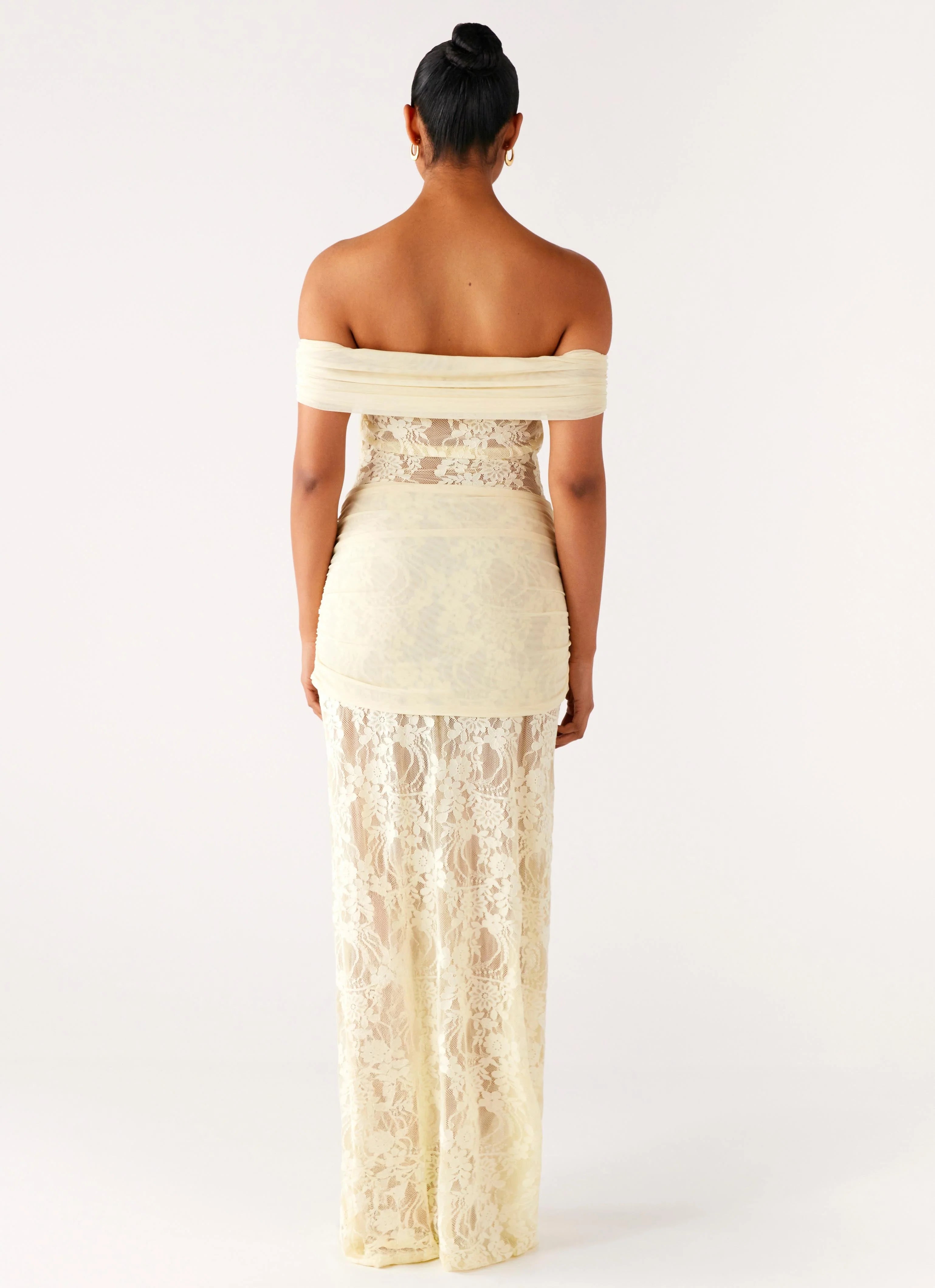 The Gracie Twist Maxi Dress is all about modern elegance with a bold twist. Designed with an off-the-shoulder neckline and gathered bust overlay, this fitted maxi features sheer mesh panels at the hip and underlay for a subtle reveal. Finished with gripper tape and an invisible side seam zipper for a secure fit, it's made to own the night.