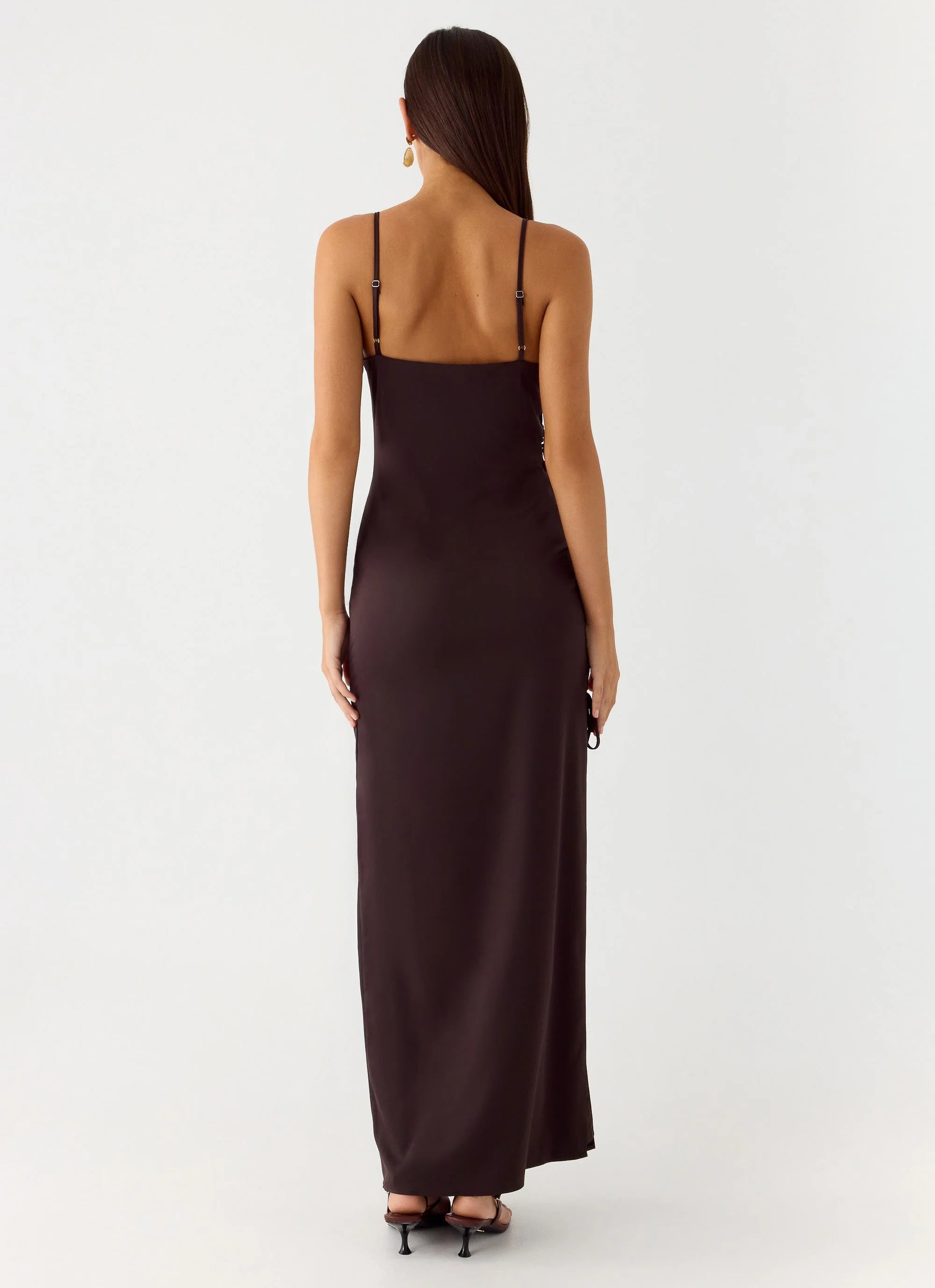 The Hartwell Maxi Dress is made for golden hour elegance and sunset-to-sundown style. Featuring a straight neckline with adjustable straps and a lace-up side detail, this fully lined maxi silhouette is crafted in satin with a flattering side split for effortless movement. Perfect for statement styling from day to night.