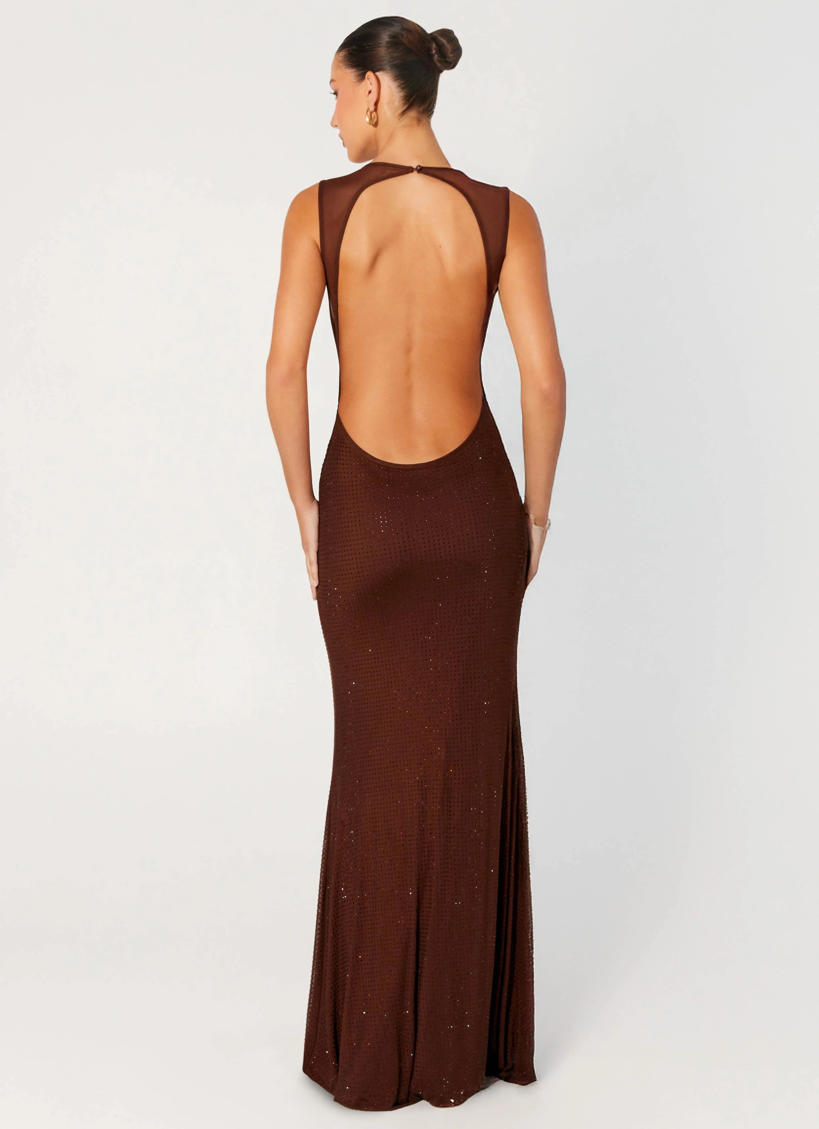 The Hot Sequins Maxi dazzles with a rounded neckline and stretch beaded mesh fabric. Fully lined for comfort, it features a dramatic low back with cut-out and back neck button detail, perfect for making a statement after dark.