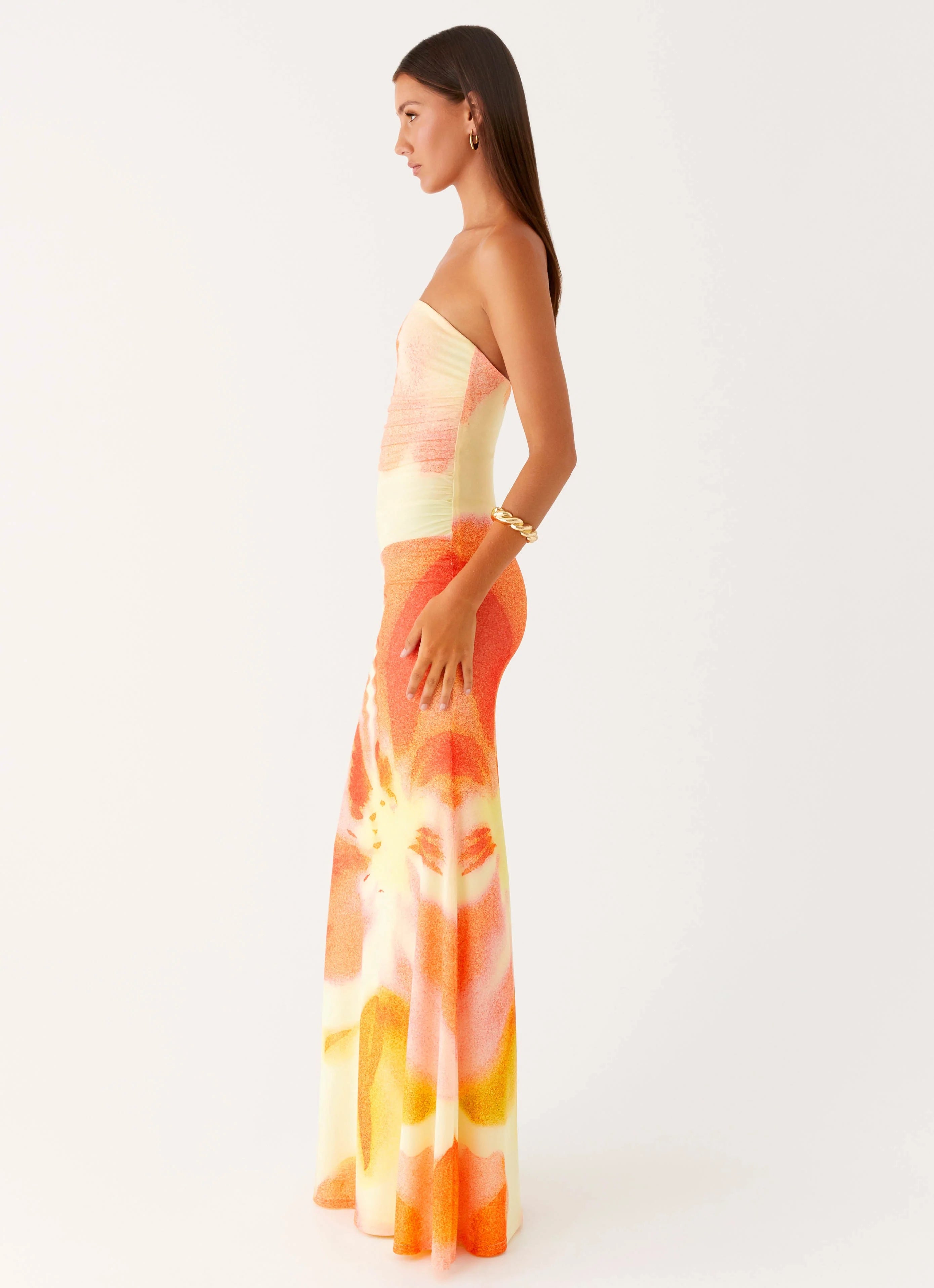 Sleek, sultry, and made to mesmerise — the Iroha Strapless Maxi Dress brings effortless drama to your PM plans. Featuring a strapless neckline with silicone taping for support, this curve-hugging silhouette is crafted from stretch mesh with flattering side ruching. Designed in our exclusive print, it’s the ultimate statement after dark.