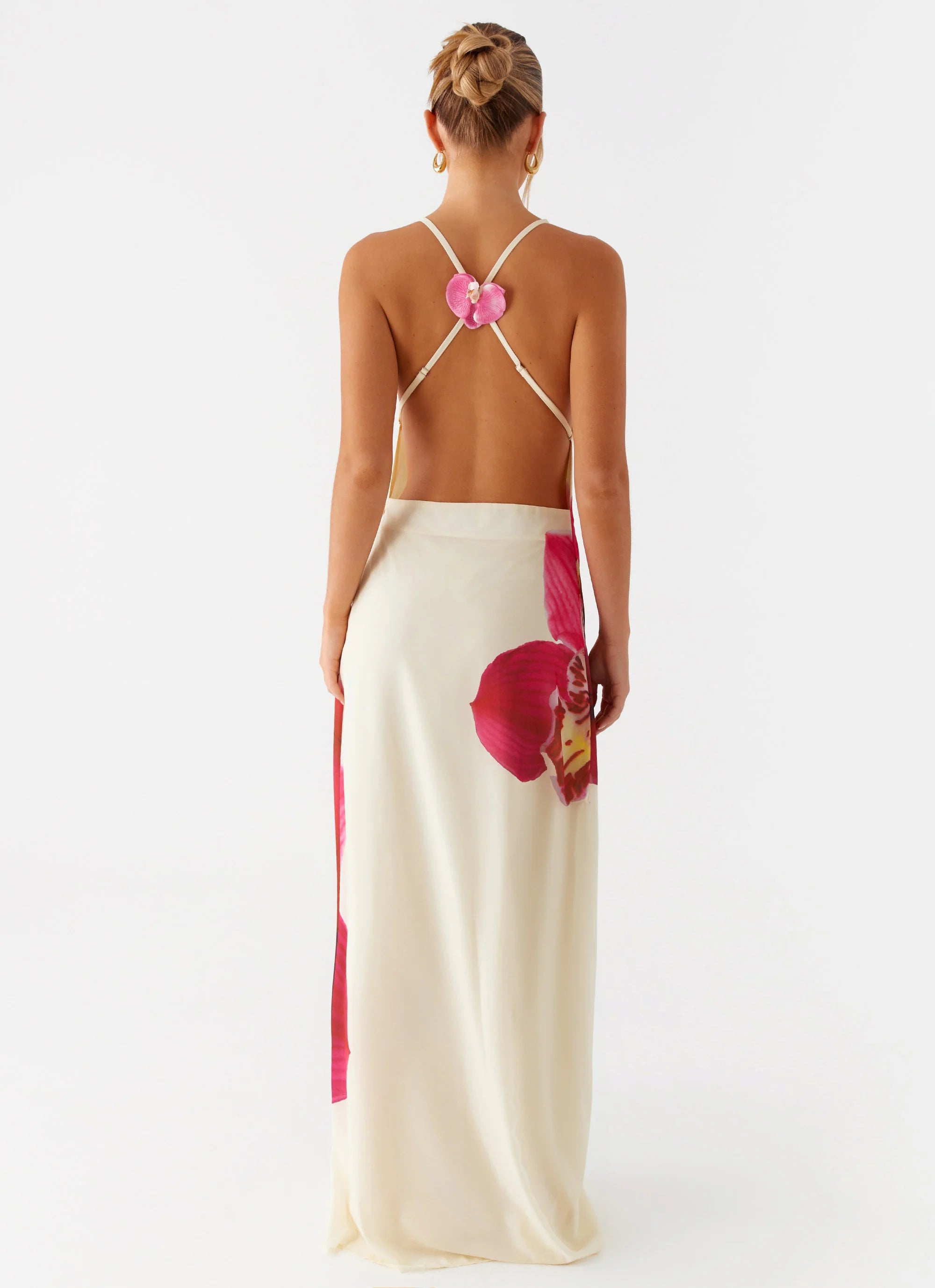 Turn heads in the Island Girl Maxi Dress. Featuring a striking open back, this bodycon silhouette hugs your curves beautifully. Adorned with an exclusive print, it exudes tropical charm and elegance.