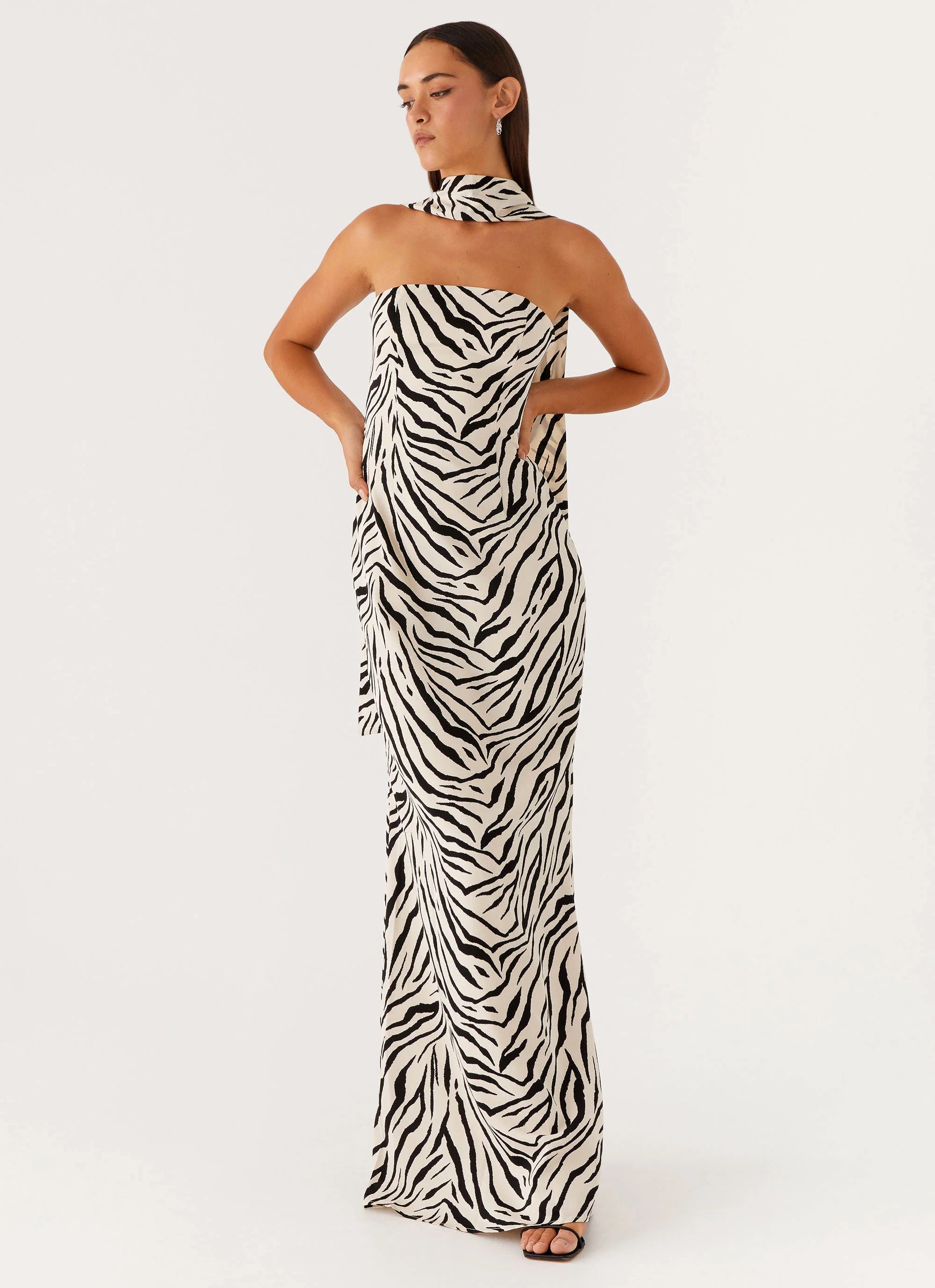 The Jigsaw Strapless Maxi Dress is the epitome of sleek sophistication. Featuring a chic strapless neckline and a statement neck scarf, it blends classic elegance with a modern edge. Fully lined for a flawless fit, this maxi dress flows effortlessly, making it perfect for golden-hour soirées and midnight moments alike.