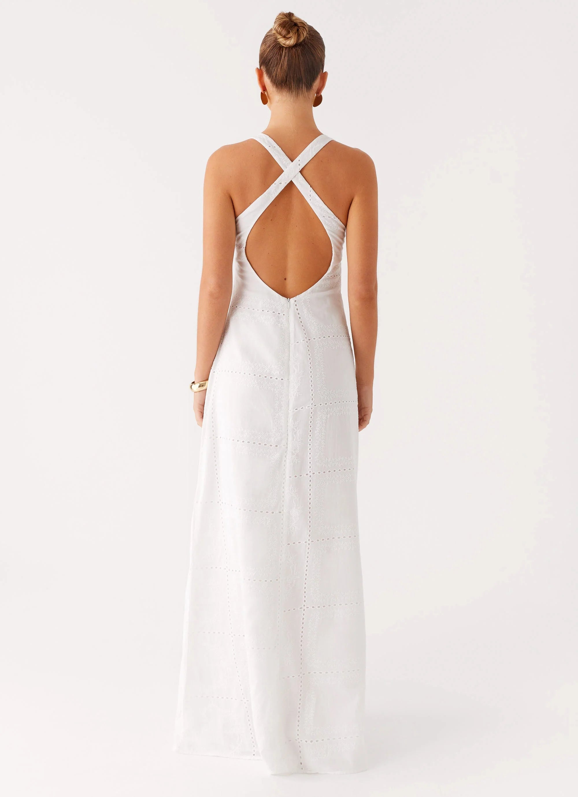The Kiana Halter Maxi Dress is made to captivate from dusk till dawn. With a flattering V neckline, delicate lace fabric, and striking back criss-cross straps, this maxi length dress is your perfect partner for balmy nights and glowing sunsets.