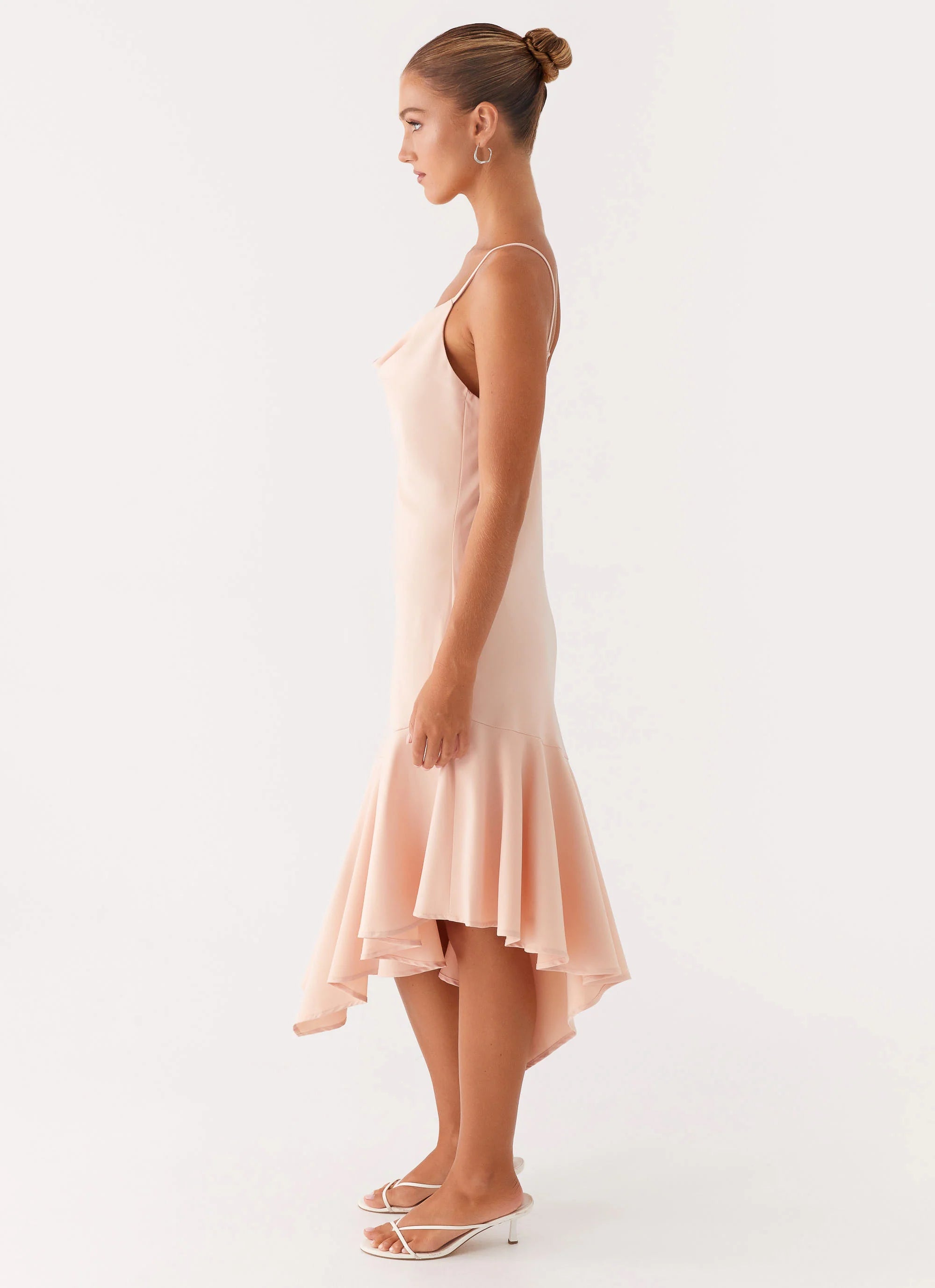 The Korby Midi Dress features a stunning cowl neckline and an asymmetrical hemline, combining elegance with a modern edge. Its flattering silhouette makes it the perfect choice for a night out or special occasion, offering both comfort and style.