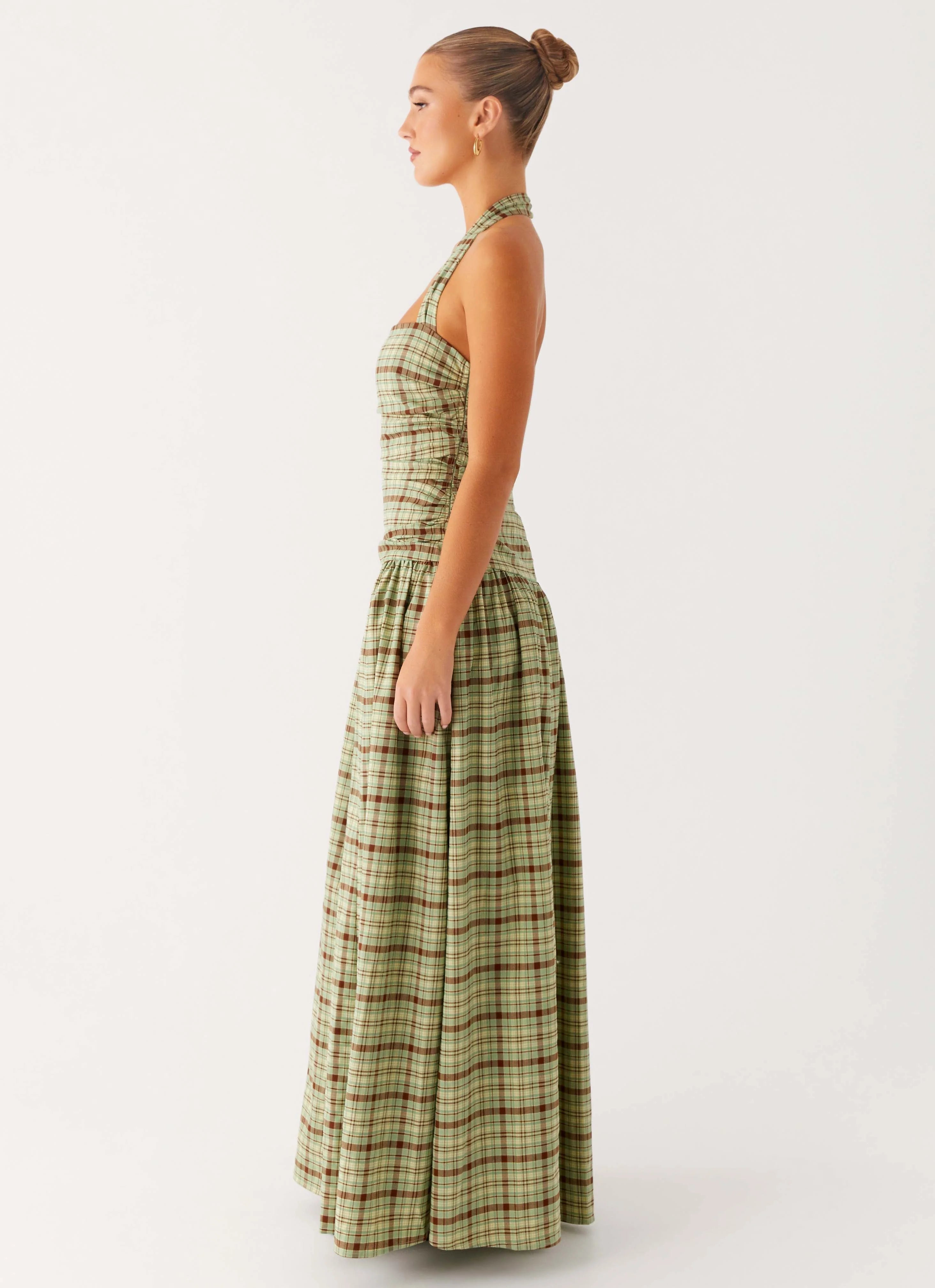 The Lilith Maxi Dress is an elegant evening staple. Featuring a straight neckline with thick halterneck straps adorned with buttons and gripper tape on the inside neckline, this fully lined dress boasts a fitted, ruched bodice and a flowing full skirt in our exclusive print.