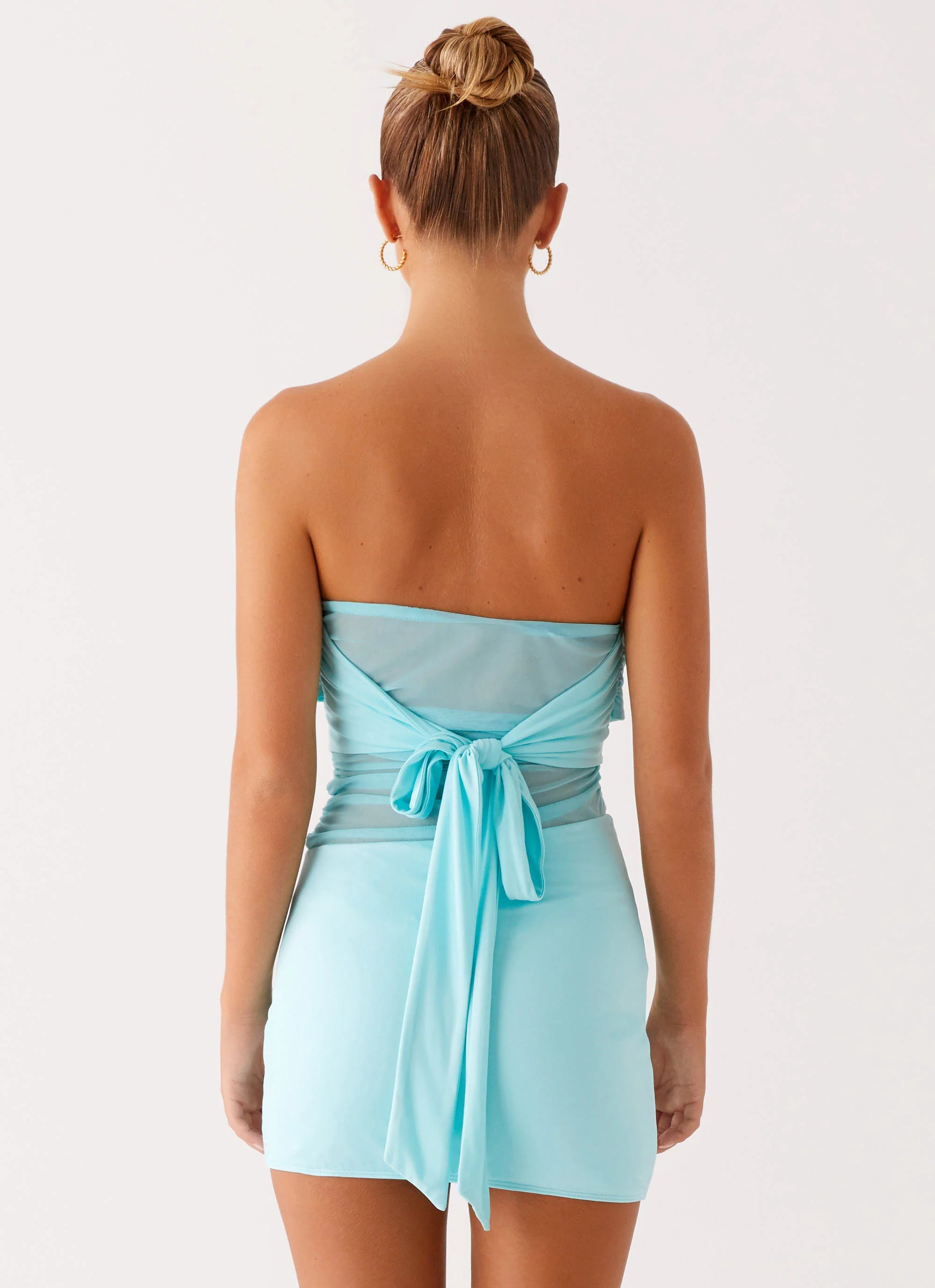 The Lita Twist Mini Dress is a chic and daring choice, featuring a unique tie-back design for a customizable fit and a gripper tape neckline that ensures a secure and comfortable fit.