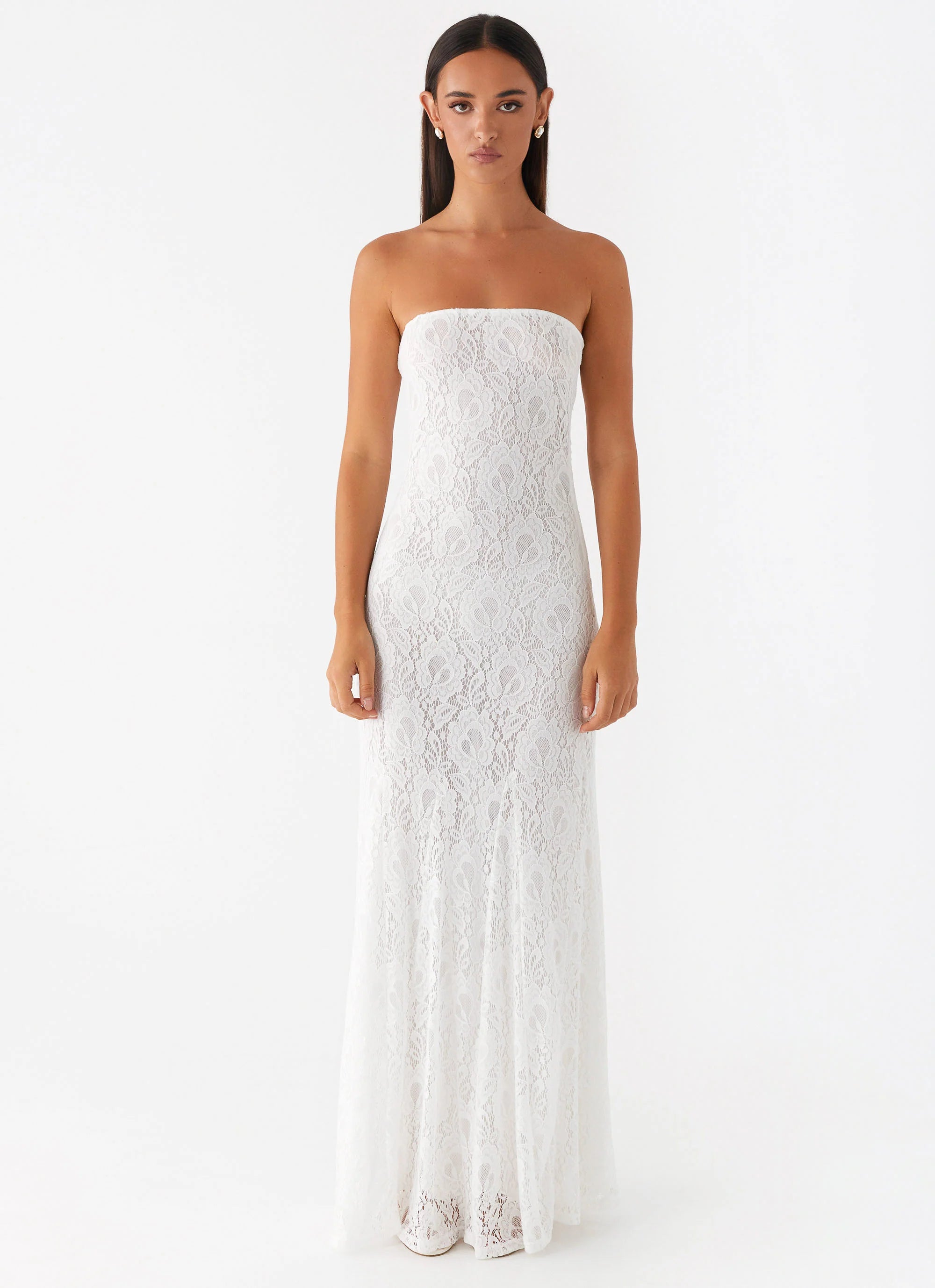 The Lolita Lace Maxi Dress is midnight romance redefined. Featuring a strapless neckline, fully lined design, and a dramatic flared hem, it moves effortlessly under golden skies. Made for balmy nights and unforgettable moments.