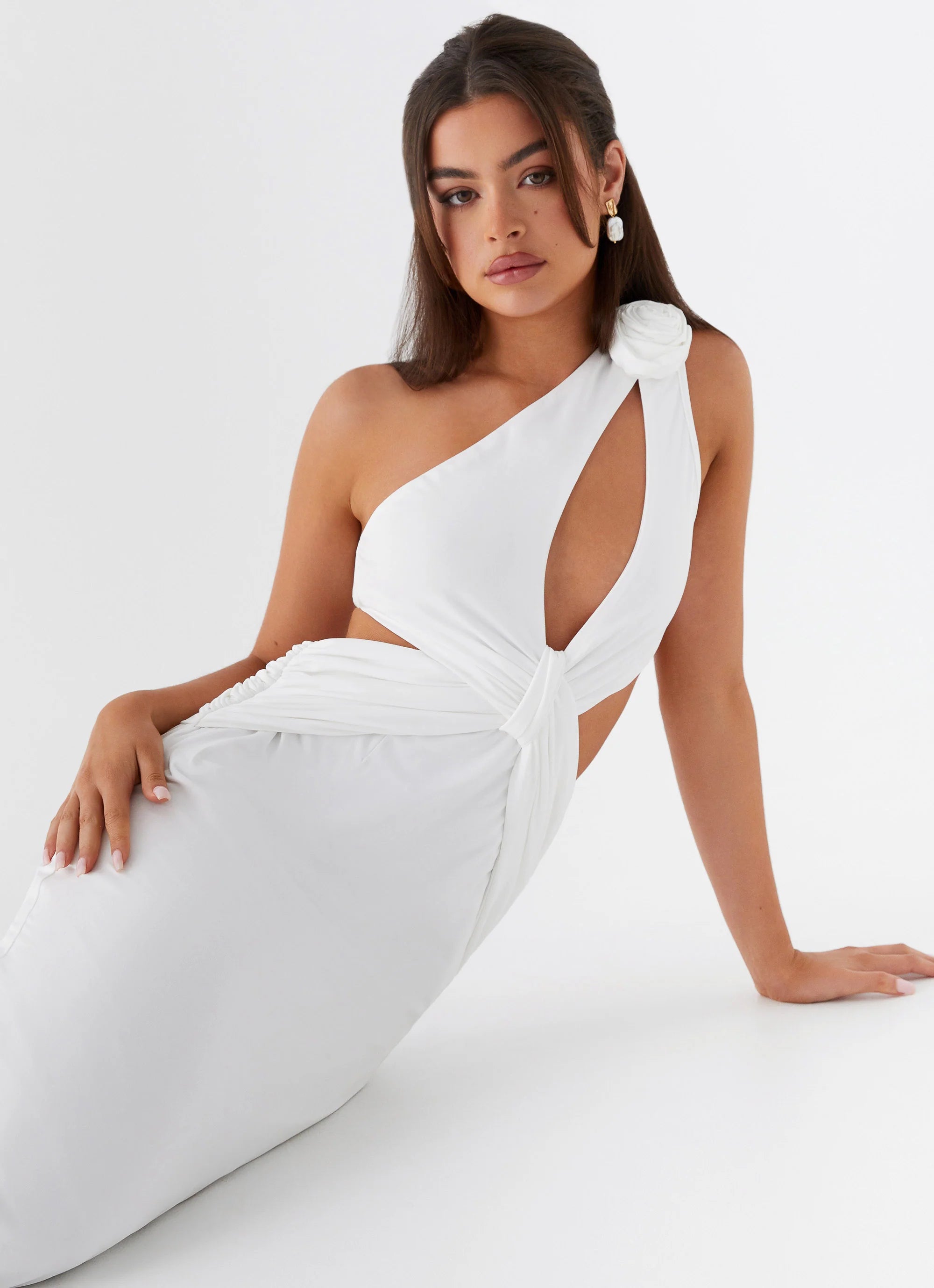 Indulge in the allure of evening elegance with the Lovesome Rosa Maxi Dress. Featuring a captivating one-shoulder neckline, intricate gathering detail, and flowing accents, it's designed for those enchanted by moonlit soirées and the rhythmic pulse of nightlife.