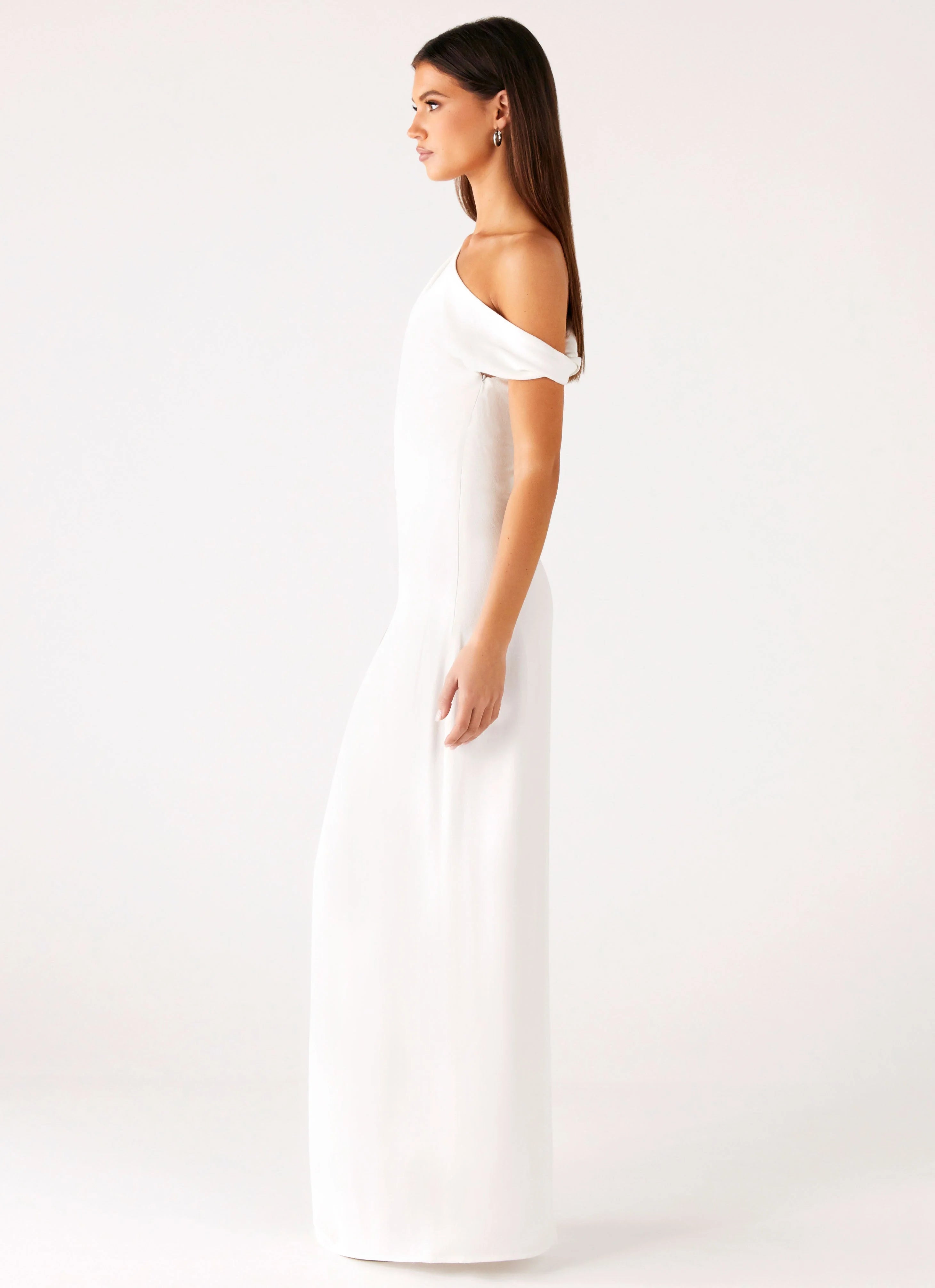 The Mckenna Maxi Dress moves with effortless elegance, featuring an asymmetrical neckline and ruched shoulder seam that catch the light from sunset to sundown. Crafted from a breathable cotton-linen blend and fully lined for comfort, this maxi-length silhouette is designed to flow through balmy nights and city lights.
