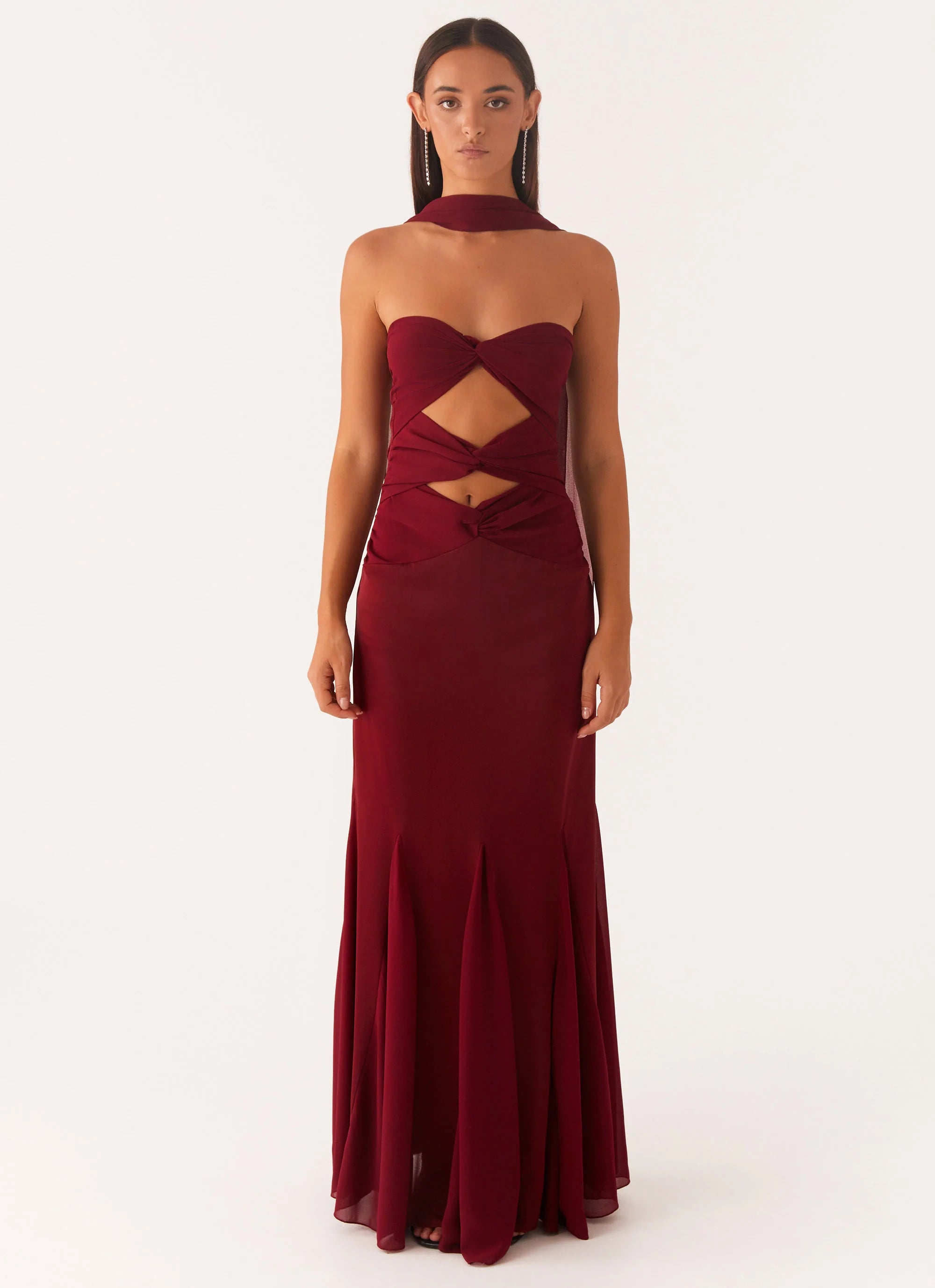 The Melrose Satin Chiffon Maxi Dress is a luxurious and striking piece that exudes elegance. Featuring cut-out details at the front of the bodice, it adds a modern and daring touch to the design. The satin mermaid-fit skirt contours to the body, creating a flattering silhouette that flows gracefully.