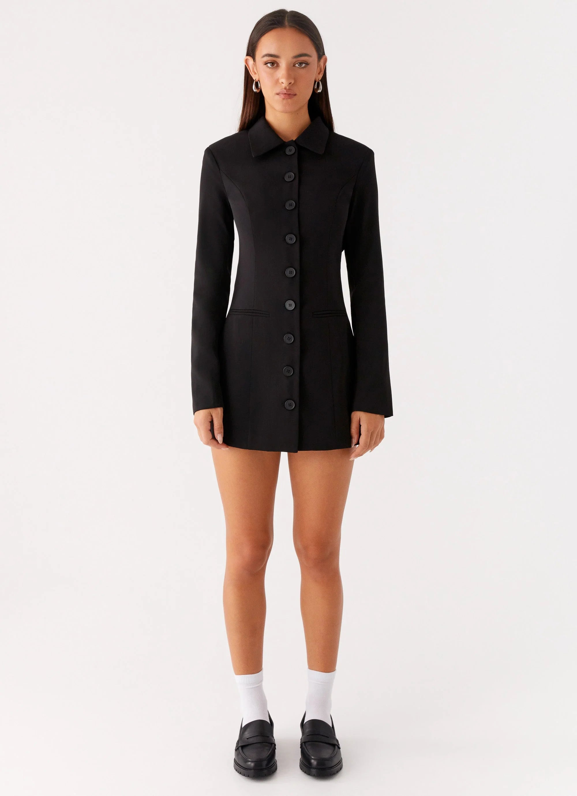 The Memphis Blazer Mini Dress brings tailored edge to your after-dark wardrobe. Featuring a high collared neckline, front button opening, and loose fitted long sleeves, this fully lined piece is finished with front pockets and a bold open back for a modern twist on classic tailoring.