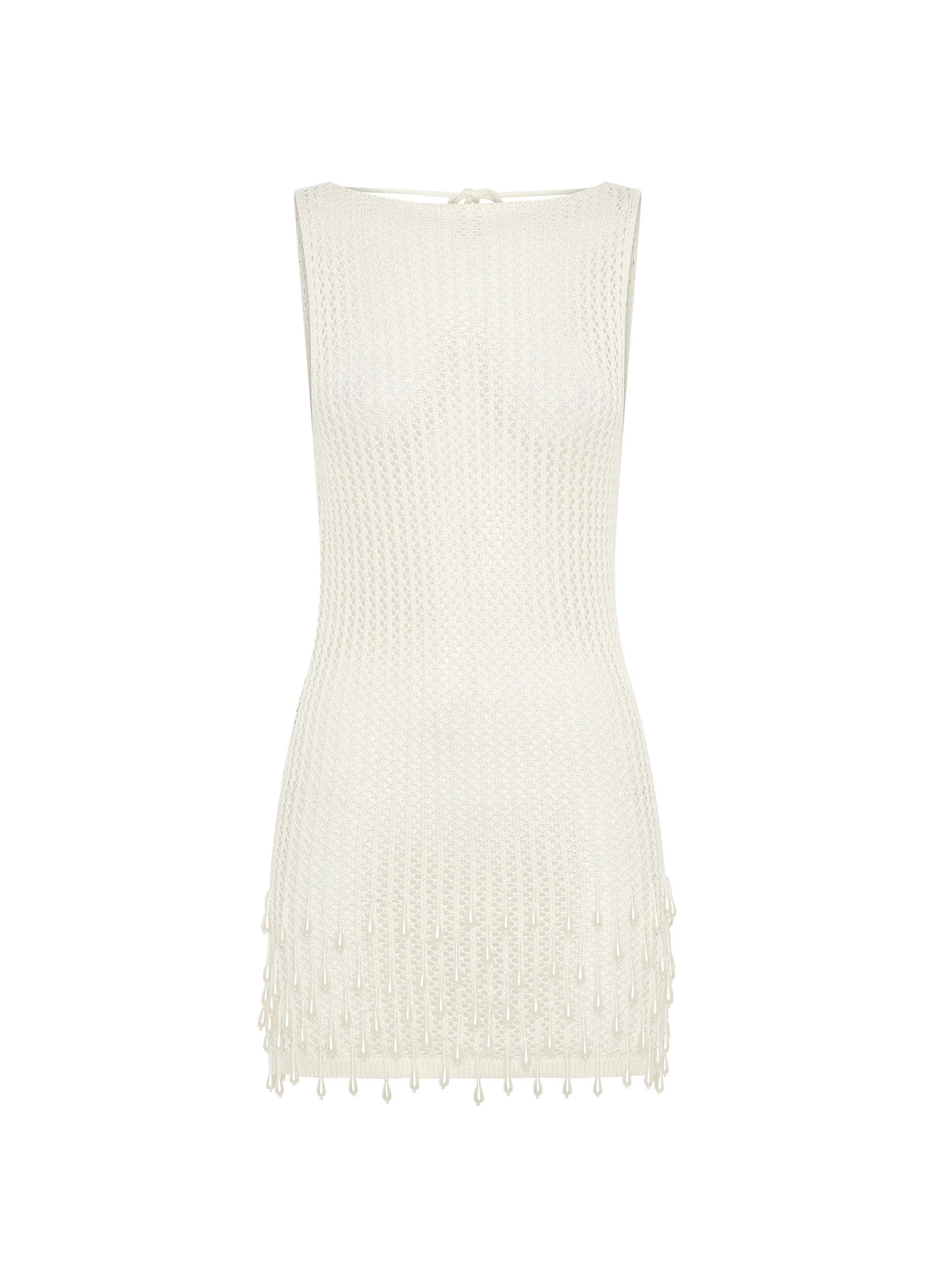The Miracle Beaded Crochet Mini Dress combines elegance and edge with its rounded neckline and semi-sheer crochet design. Crafted from stretch knit, it offers a comfortable, flattering fit, while the intricate beading adds a touch of sparkle. Perfect for turning heads at any event.