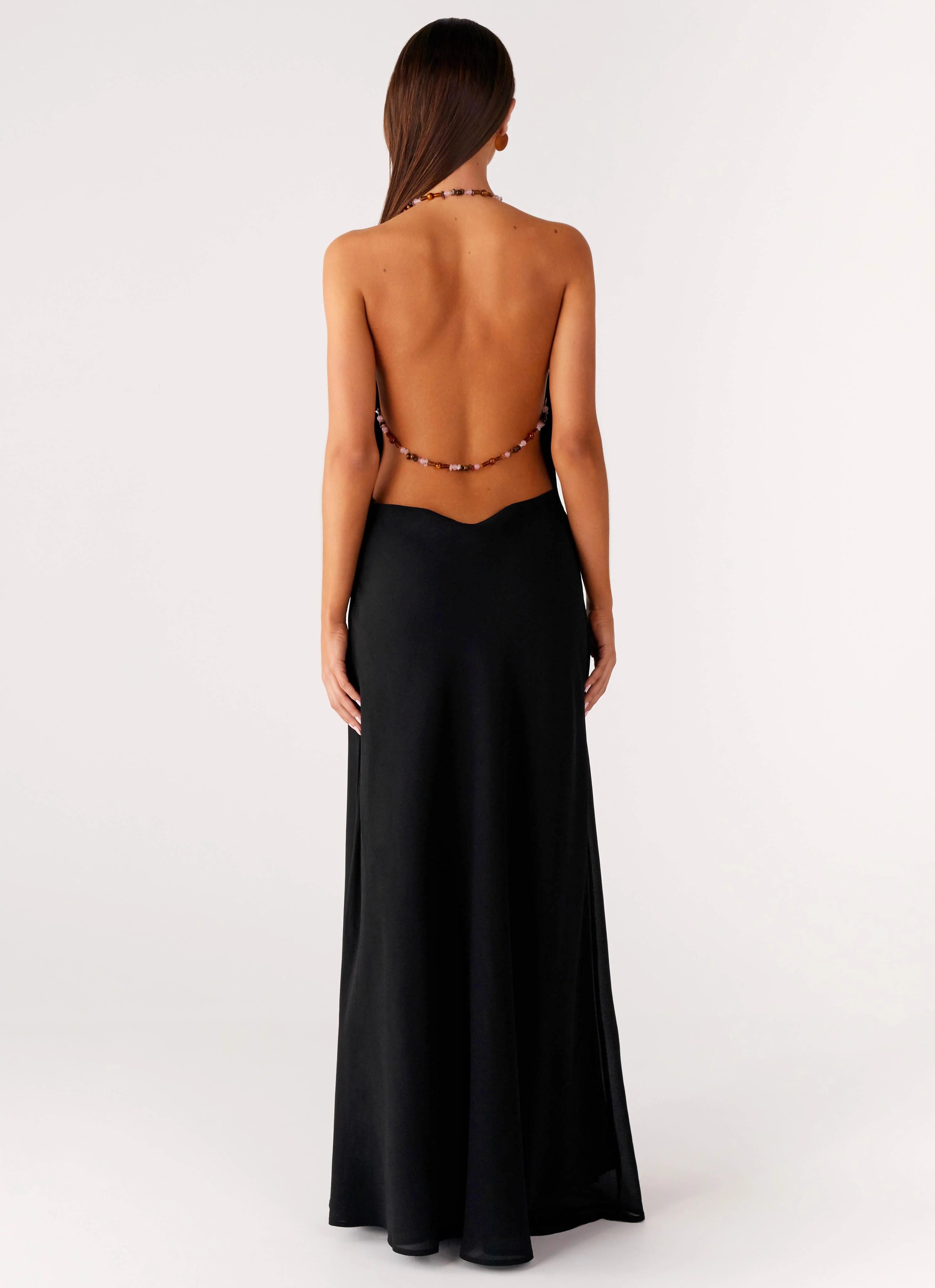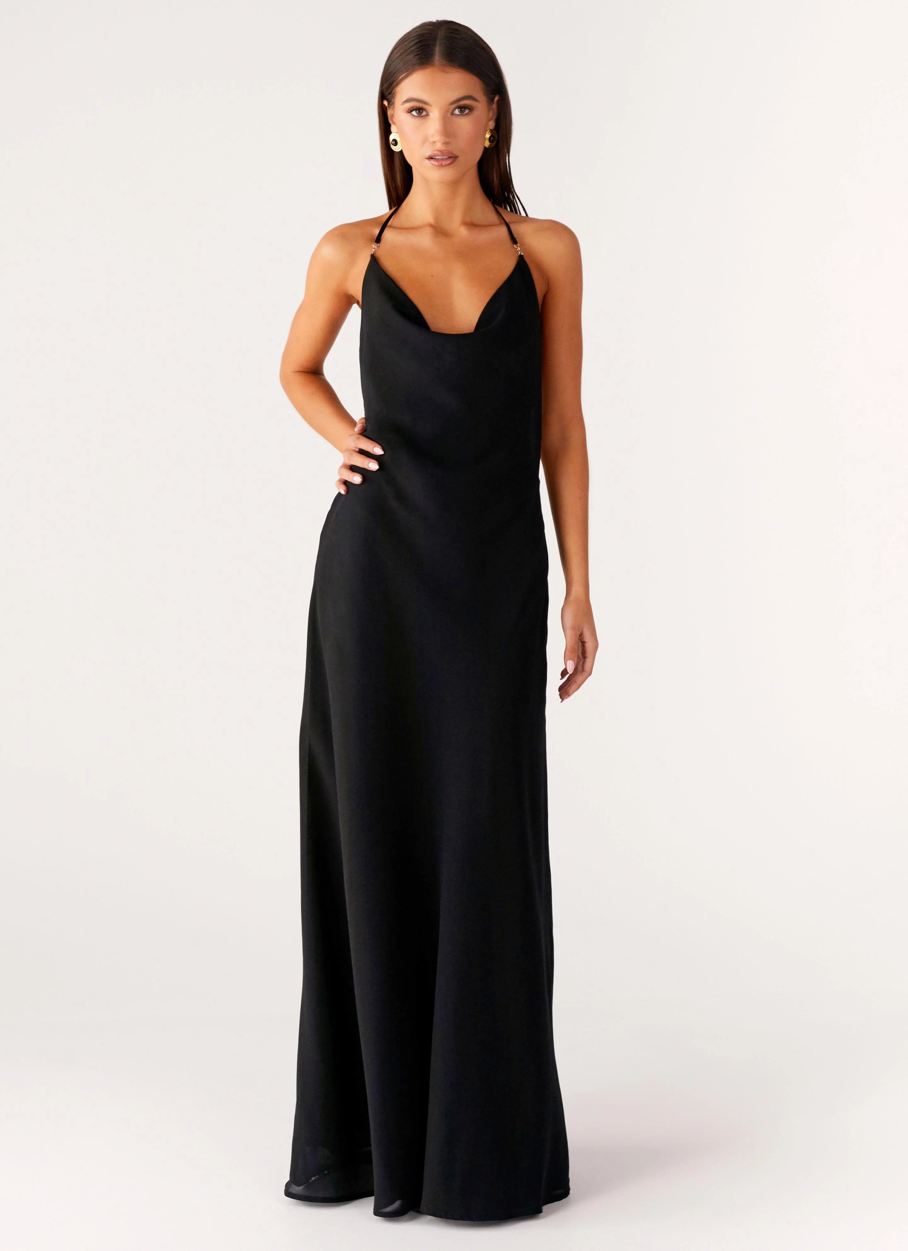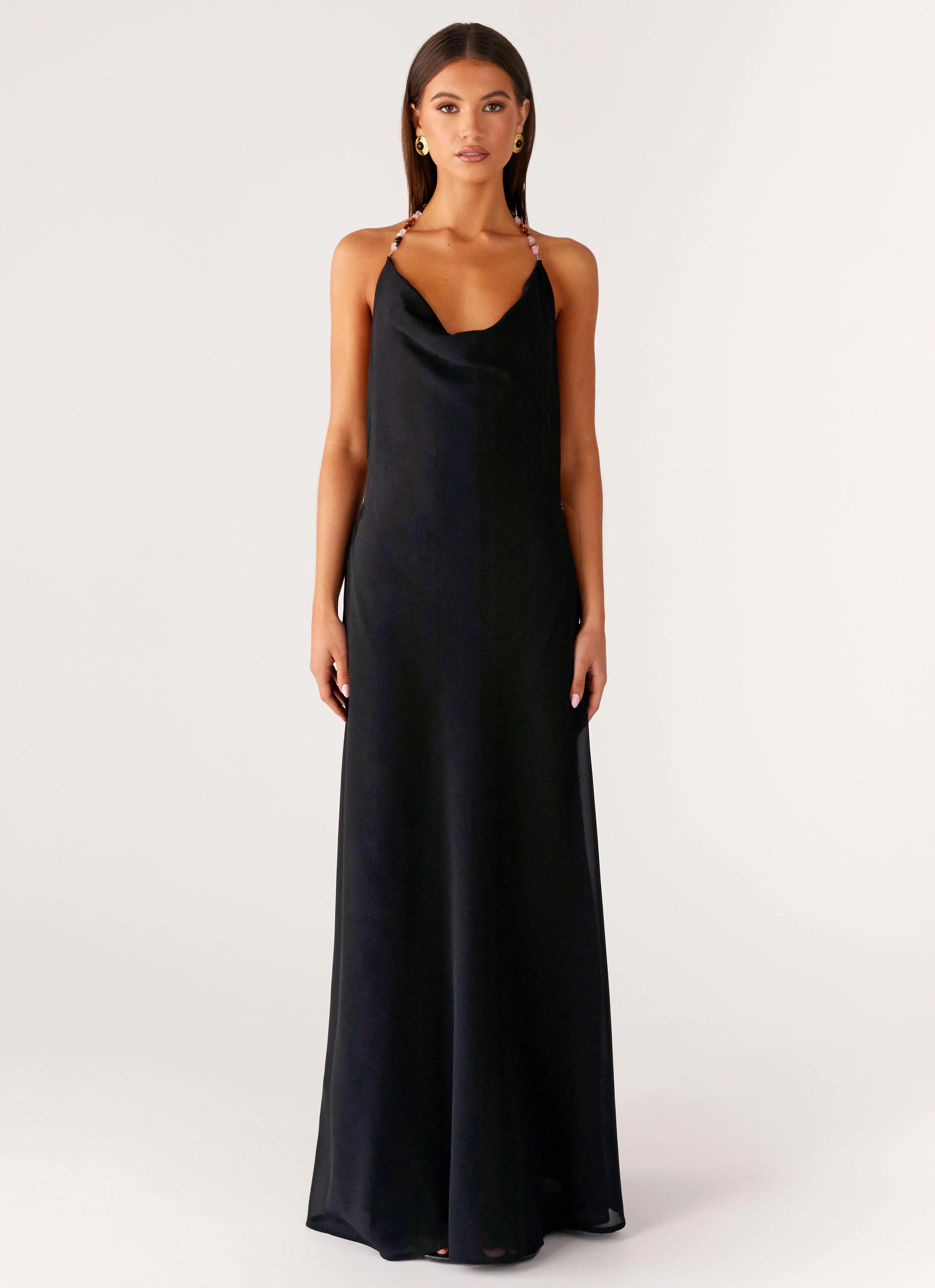 The Morning Crush Cowl Maxi Dress is made for unforgettable nights. Featuring a soft front cowl neckline and shimmering detachable beaded halter strap, this fully lined silhouette is complete with a low back and side invisible zipper for a smooth finish.