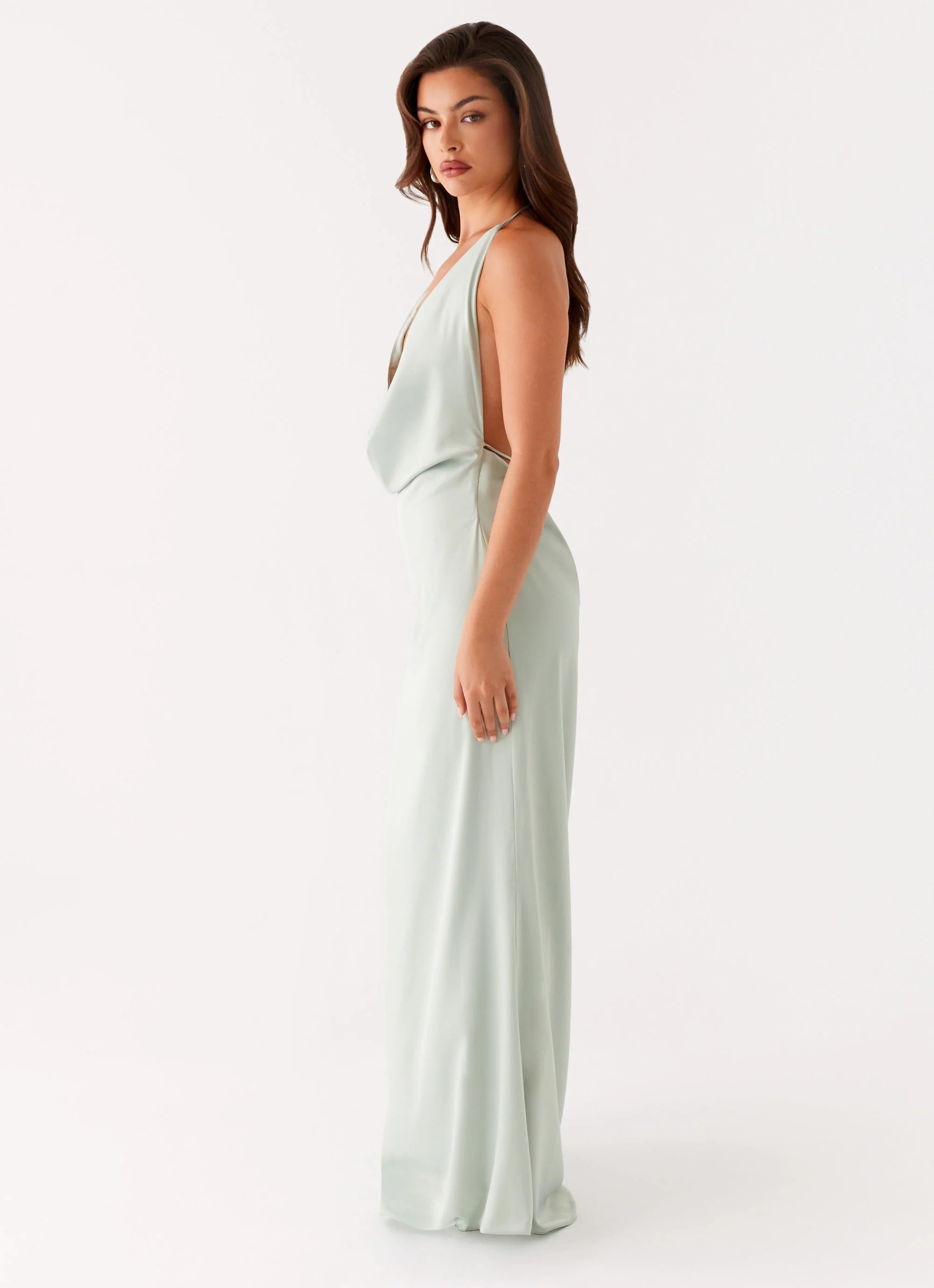 The Noemi Maxi Dress features a striking deep cowl neckline at the front and a seductive low back, creating an effortlessly chic and elegant silhouette. The soft, flowing fabric drapes gracefully to the floor, providing a flattering fit that moves with you.
