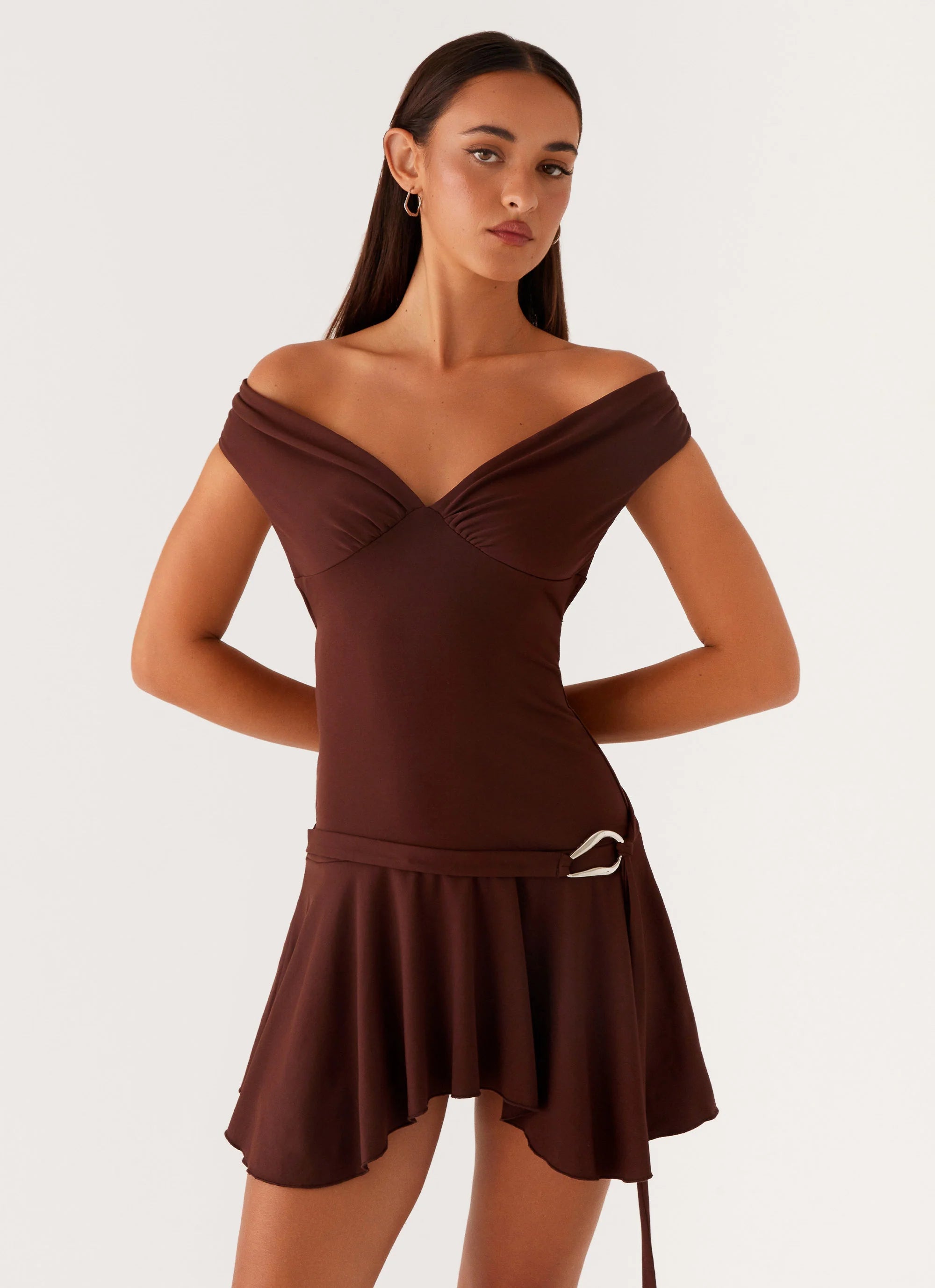 The Saffira Mini Dress is a bold blend of elegance and edge. Featuring an off-shoulder neckline and an alluring open back, it’s designed to make a statement. The waist-cinching belt with metal detailing adds a touch of structure and sophistication. Perfect for golden skies and city lights, this dress is made for unforgettable nights.