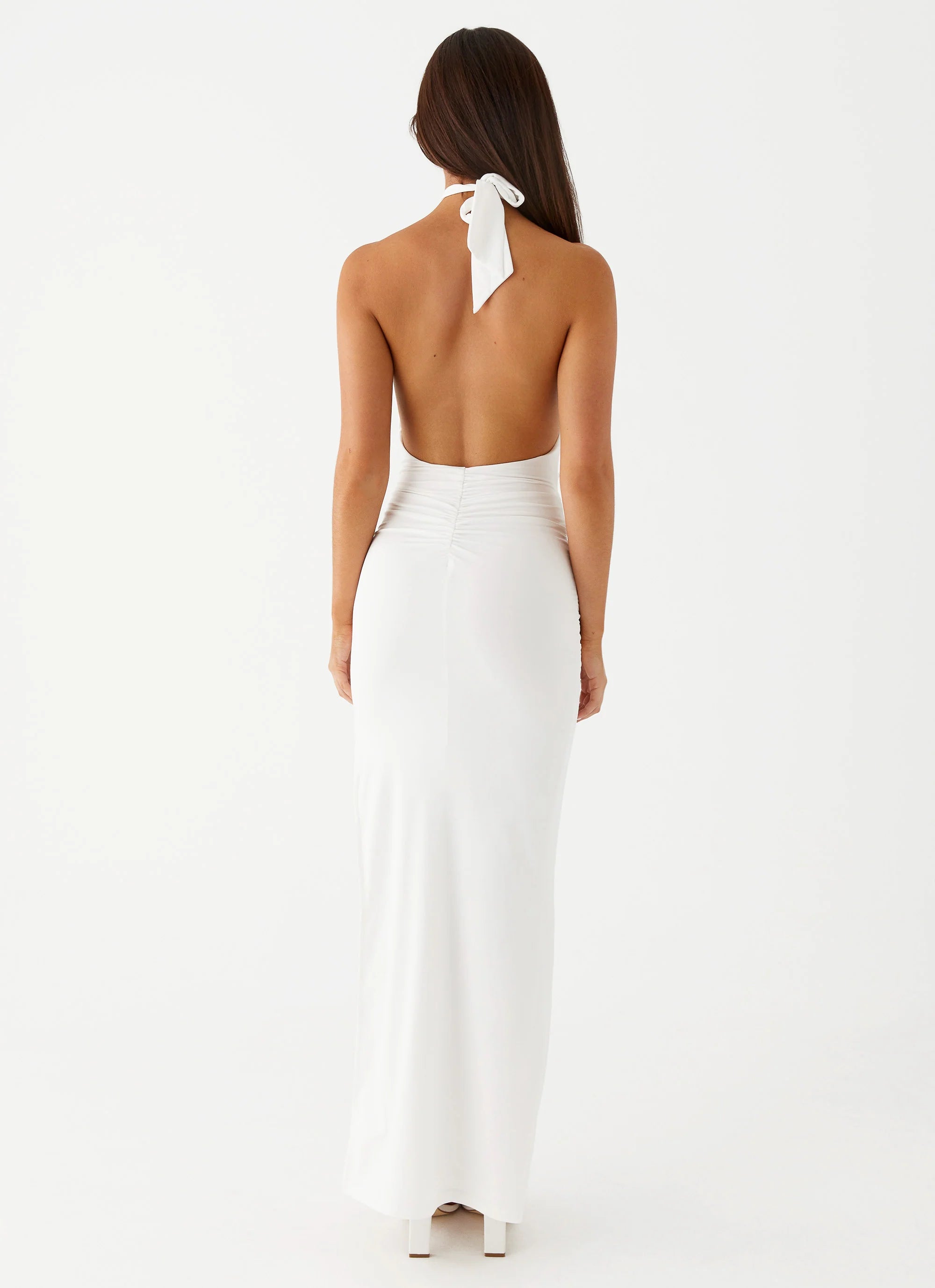 Dance the night away in the Samara Halterneck Maxi Dress. Featuring a chic halter neckline with a stylish tie at the neck and hardware detail, it's designed for those who love moonlit soirées and the allure of evening sophistication.