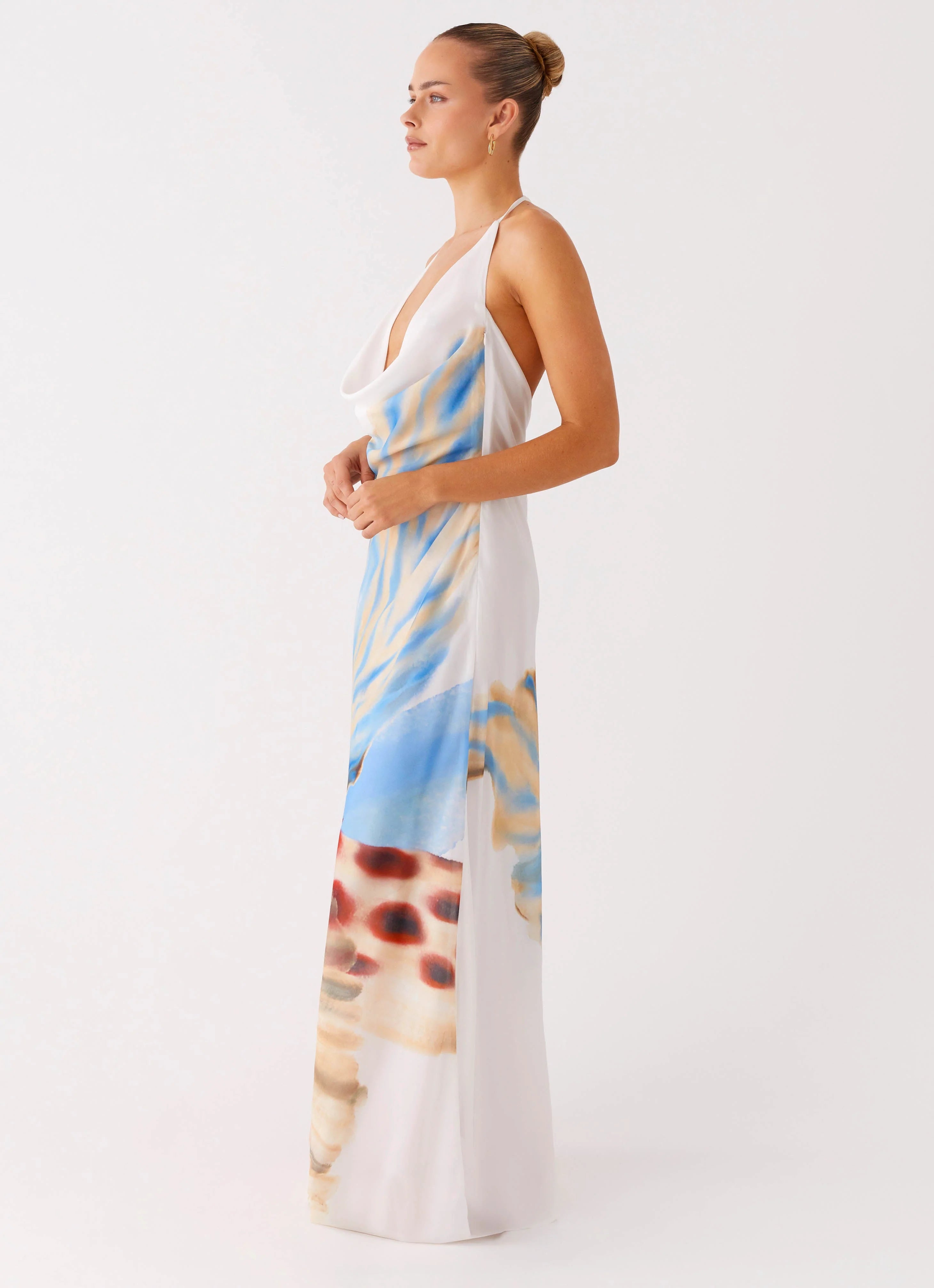 Slip into celestial elegance with the Stars Align Cowl Maxi Dress. Featuring a fluid low cowl neckline and open low back, this chiffon maxi drapes effortlessly over the body for a look that’s equal parts dreamy and daring. Designed in our exclusive print, it’s the perfect piece for golden hour soirées and starlit nights.