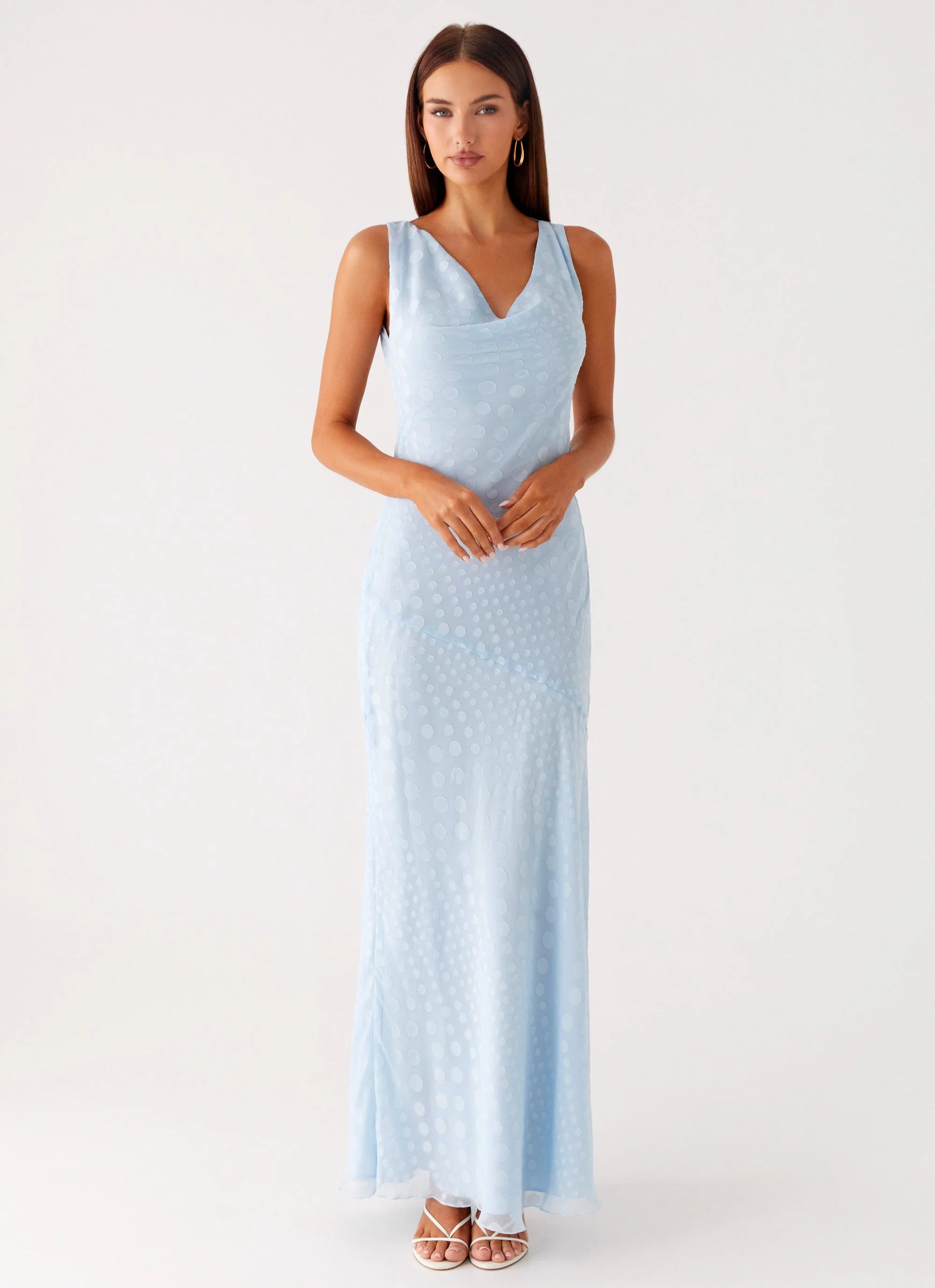 The Sundance Chiffon Maxi Dress is effortlessly elegant with a cowl neckline and low back detailing. Designed in textured chiffon with a bias cut, this maxi dress drapes beautifully and features a back tie with thin adjustable straps for the perfect fit. Fully lined for comfort, it slips on easily for a chic, flowing silhouette.
