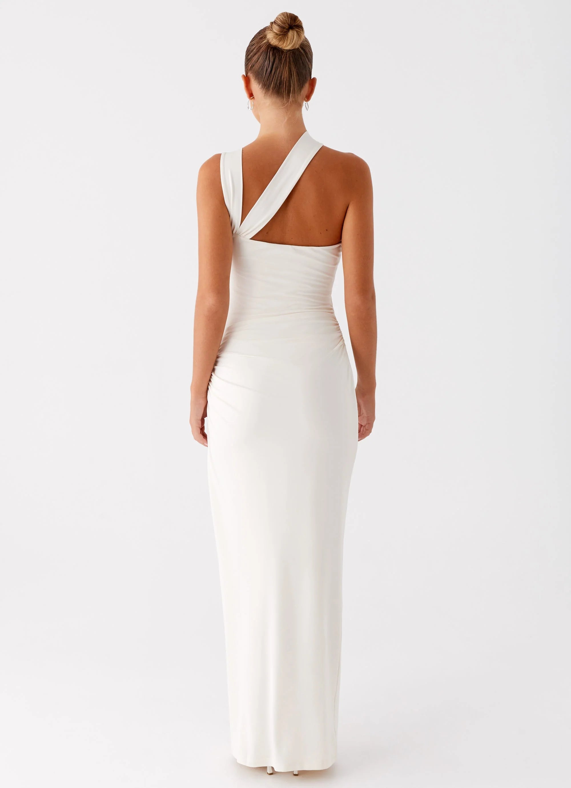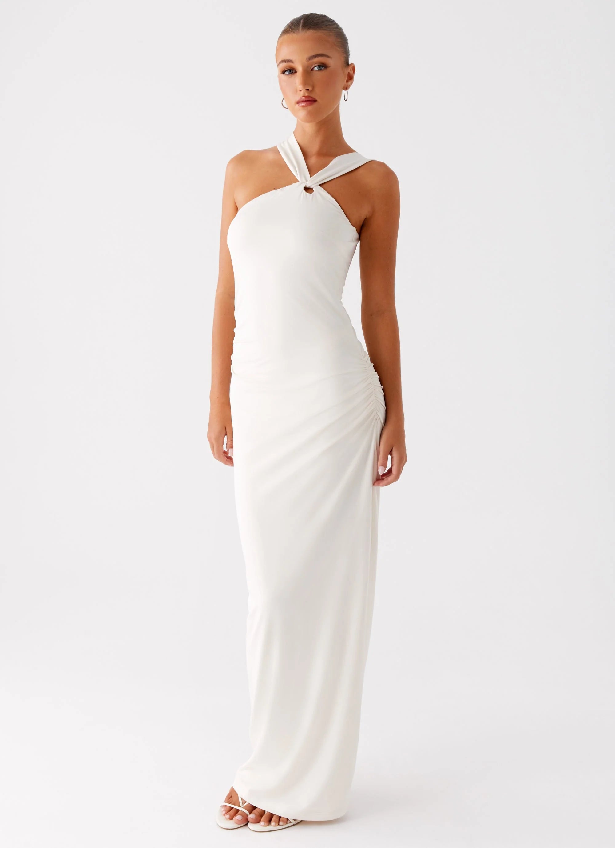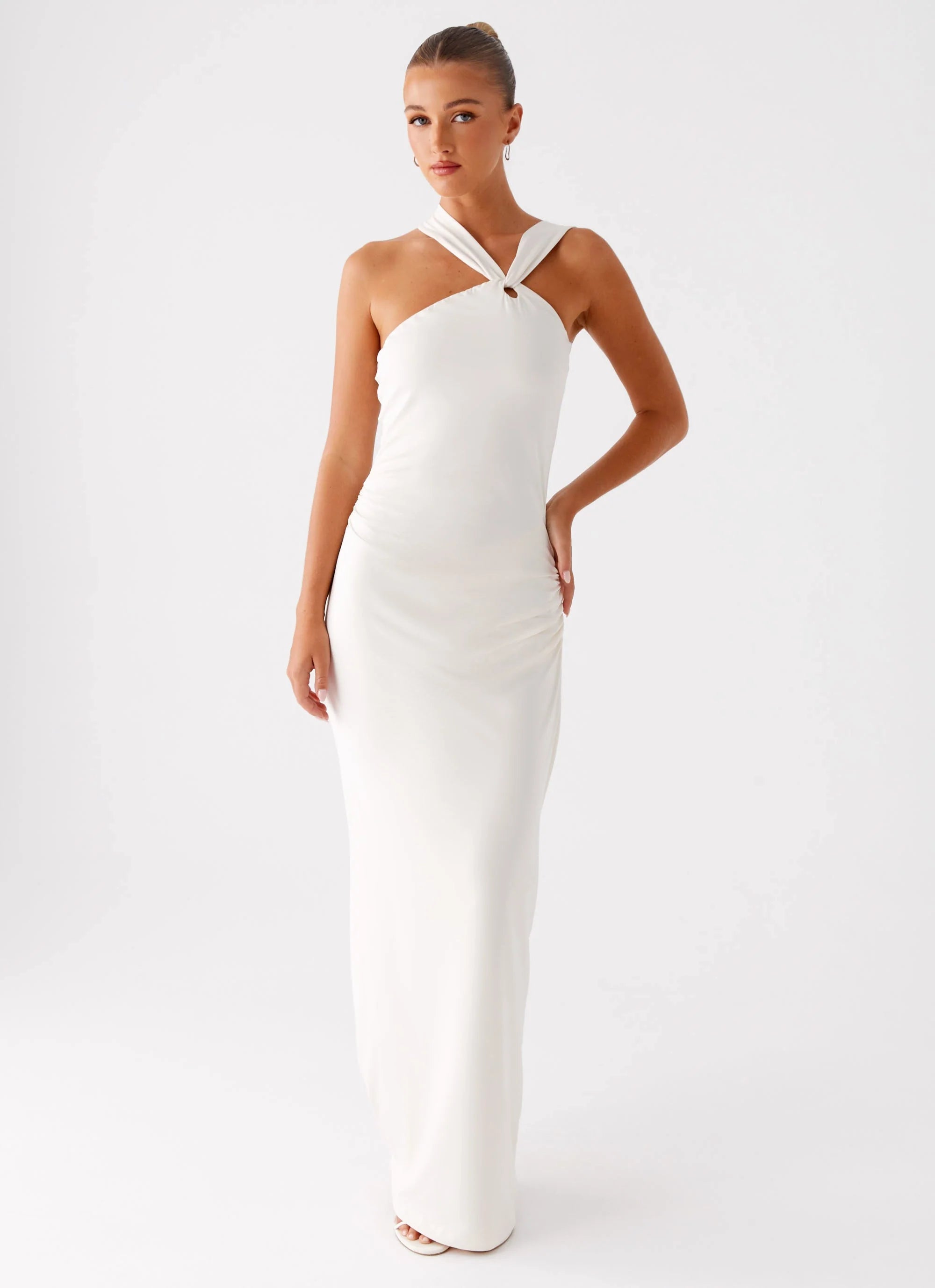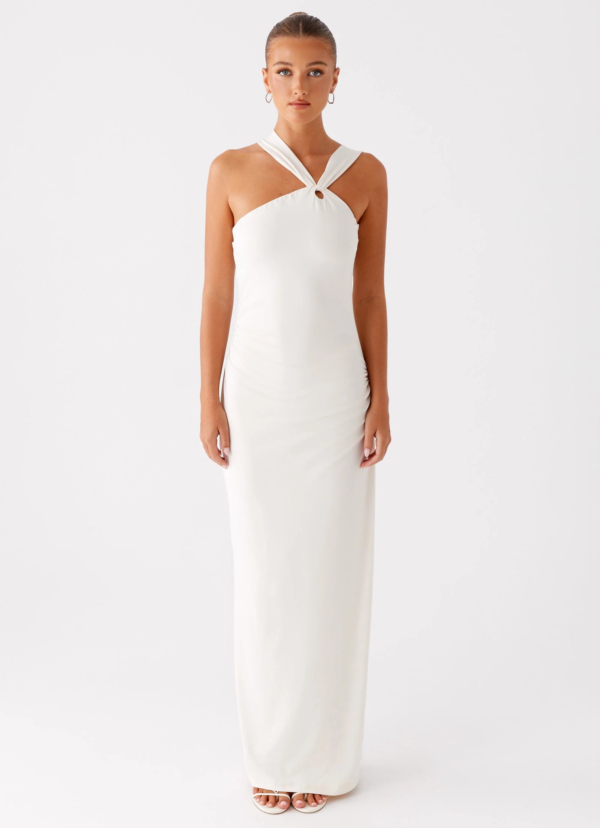 The Tamira Maxi Dress is a striking piece with its asymmetrical neckline and circular neckline window for a bold, modern look. Featuring double over-shoulder straps and a fitted silhouette, this maxi-length dress is designed to turn heads with its sleek and sophisticated shape.