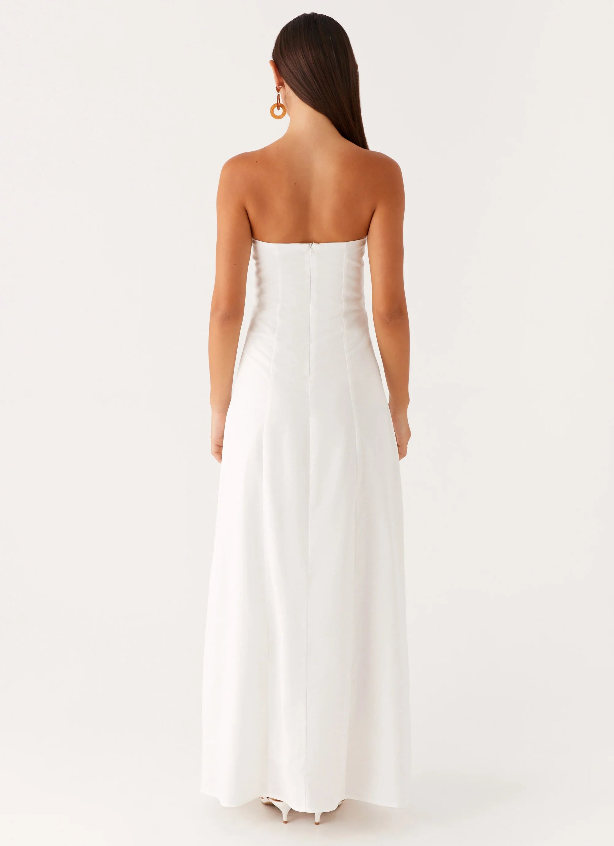 The Tayla Linen Maxi Dress features a strapless neckline and a relaxed, flared fit. Fully lined for added comfort, this dress captures effortless elegance with its flowy silhouette and breathable linen fabric.
