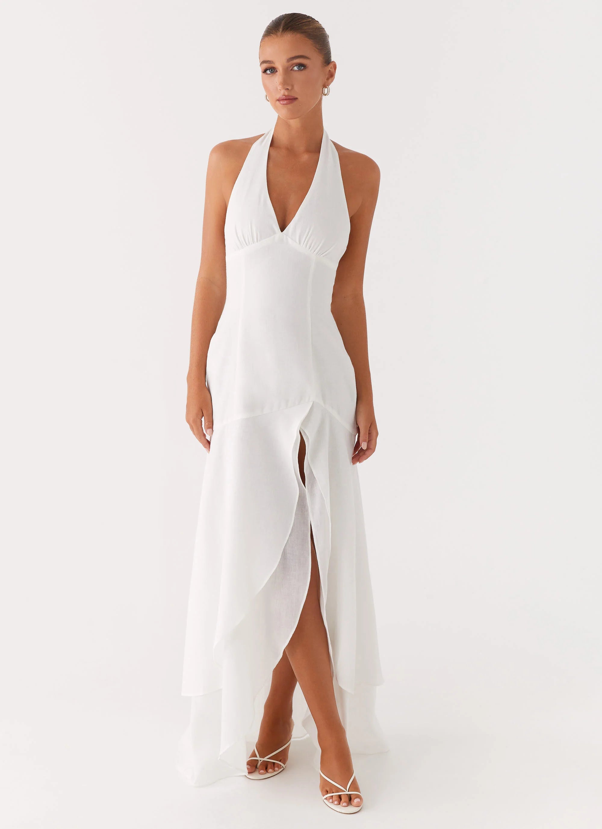 The Turu Maxi Dress combines bold and elegant elements with its deep V-neckline and front skirt split. Perfect for a glamorous evening, this dress offers a flattering, flowing silhouette that exudes confidence and grace, making it an unforgettable choice for your next special occasion.