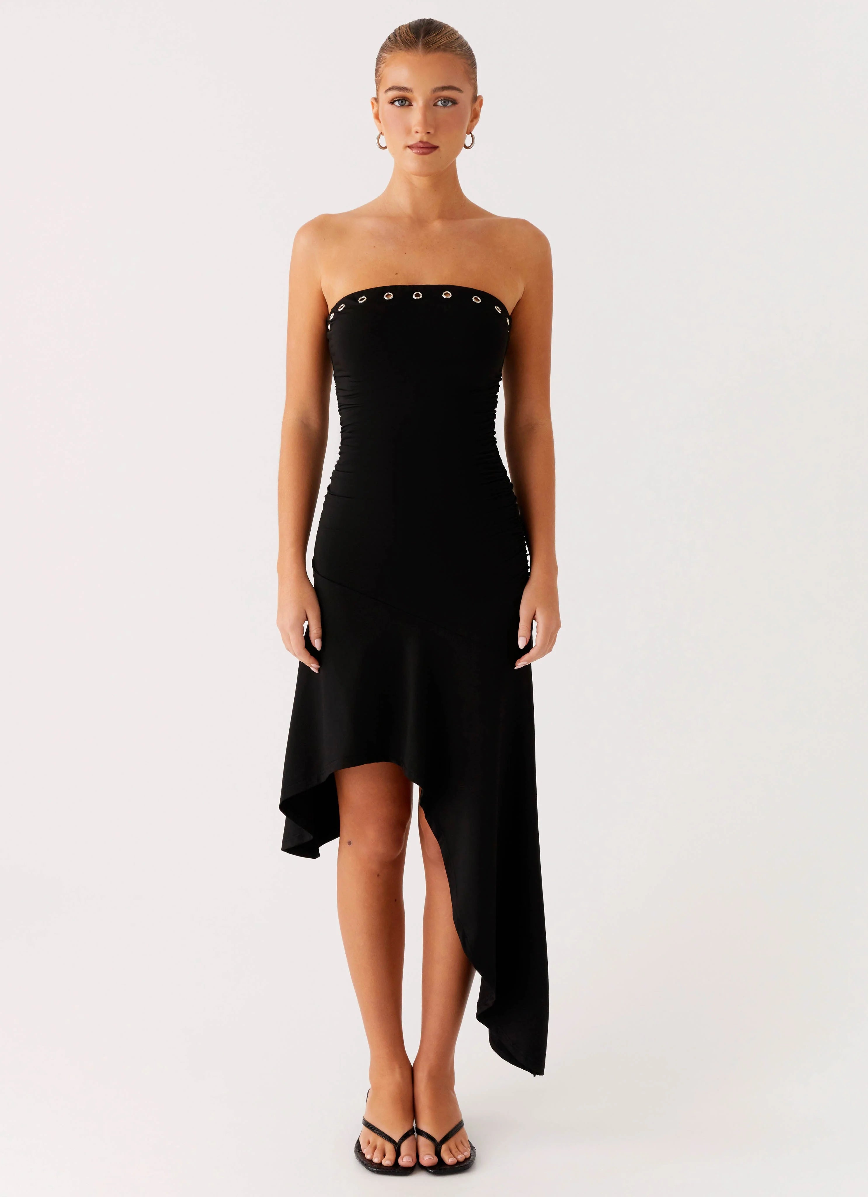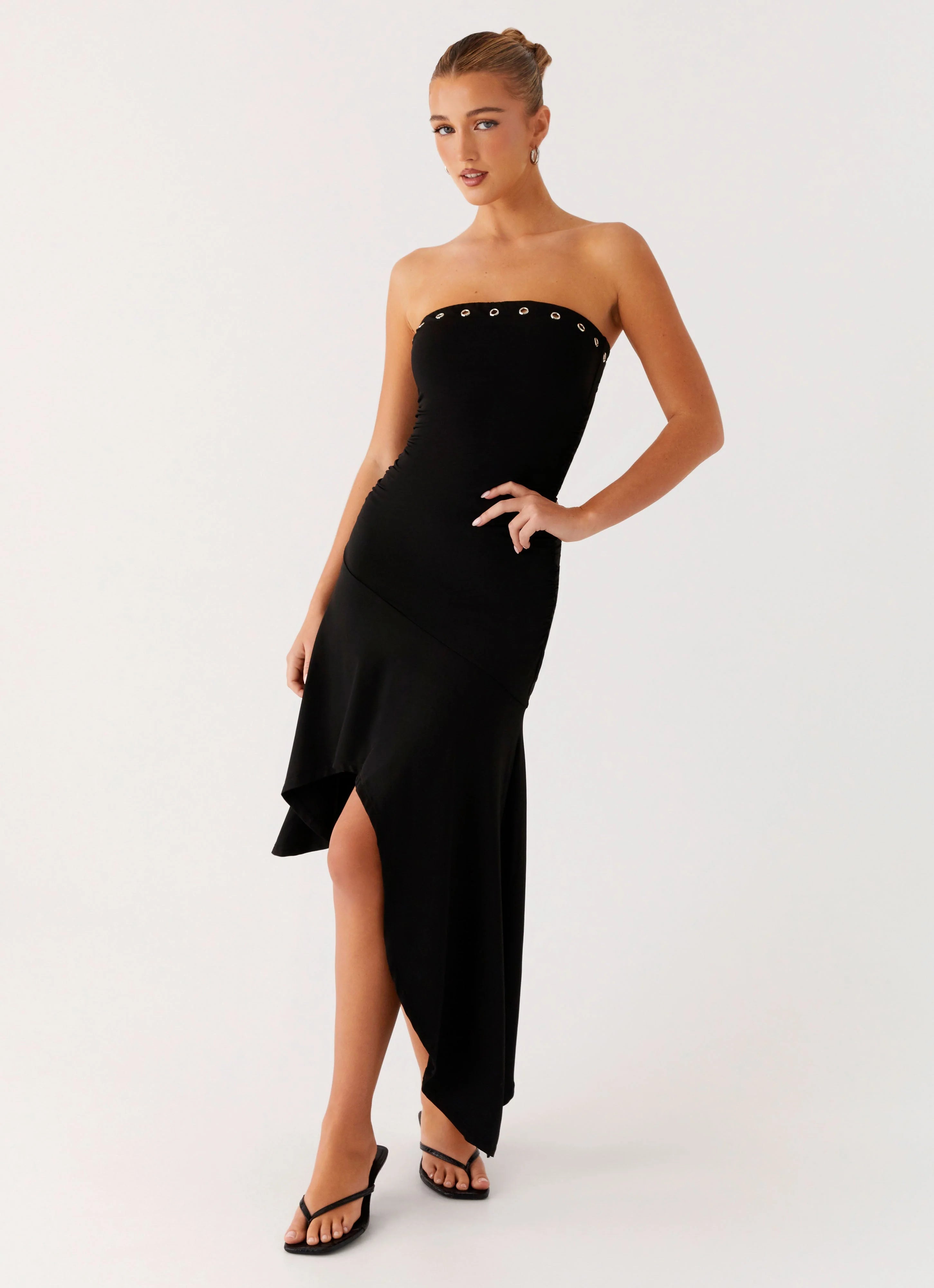 Turn heads in the Unapologetic Midi Dress. Featuring a strapless neckline and fitted bodice, this lined silhouette is elevated with eyelet detailing throughout. A bold yet feminine piece made for golden hour entrances and after-dark escapes.